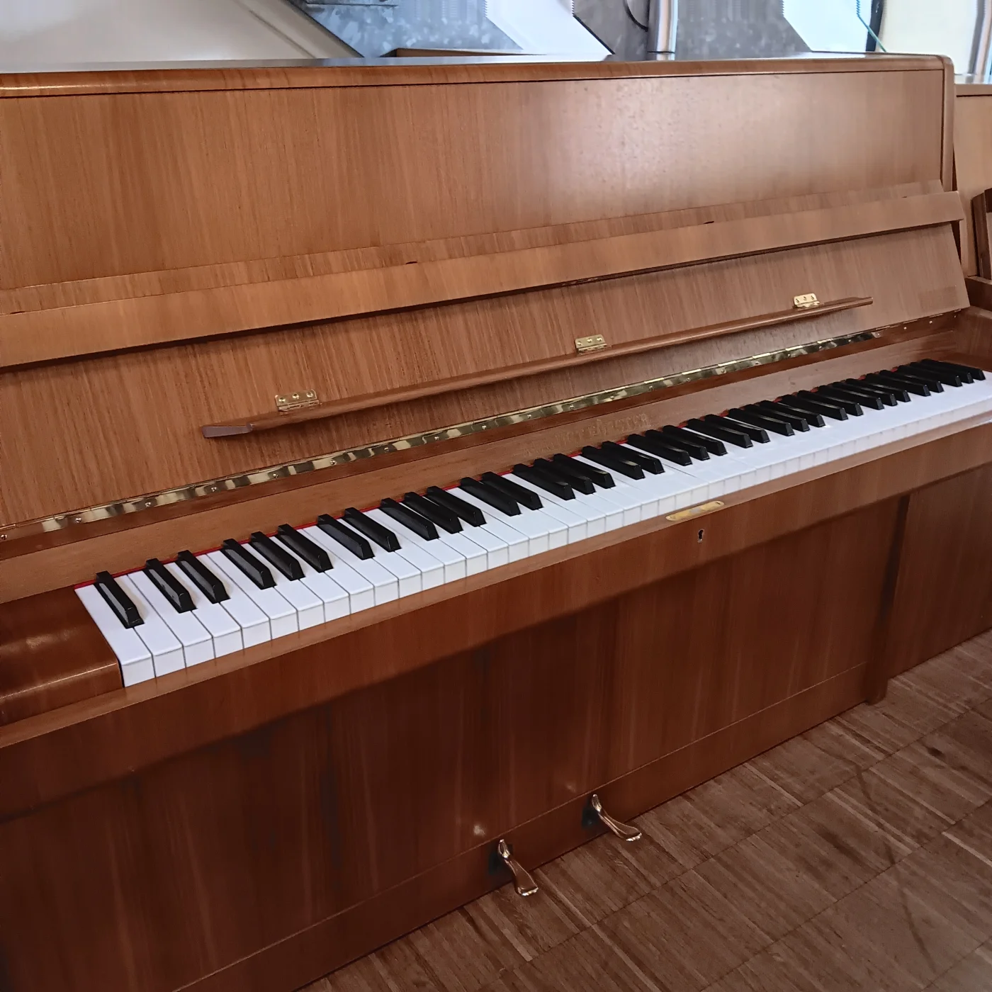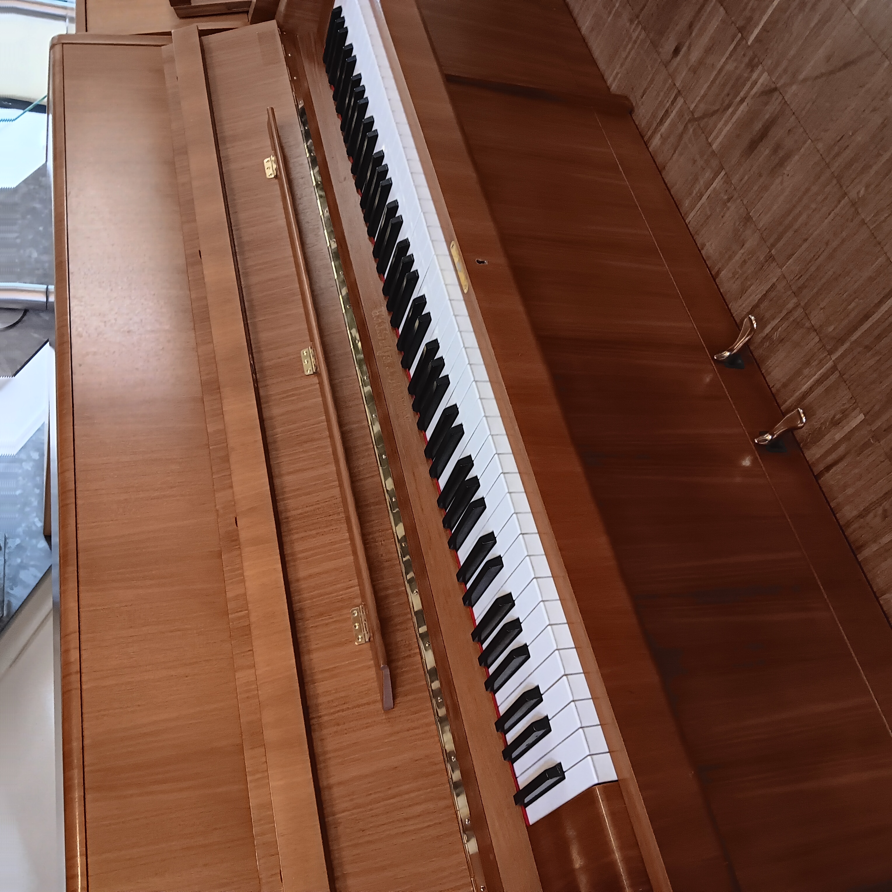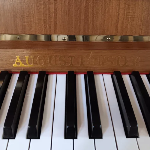 Auch die Traditionsmarke August Förster aus Löbau in Sachsen baute Kleinklaviere. Hier stellen wir Ihnen ein Modell 108 cm in Nussbaum satiniert in hervorragendem Zustand vor. Die gleichen Attribute, wie sie auch heute die größeren Instrumente dieses Herstellers ausmachen, finden Sie auch hier auf kompaktem Raum: ungemein solider Rastenbau, Gegenstege auf der Rückseite des Resonanzbodens und der eher weiche, gesangliche Ton mit guter Differenzierungsfähigkeit in den unteren Dynamikstufen. Ein Kleinklavier aus erster Hand, mitt rissfreier akustischer Anlage, überholt in unserer Meisterwerkstatt und so bereit für die nächsten 50 Jahre!