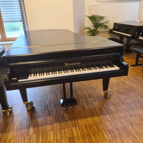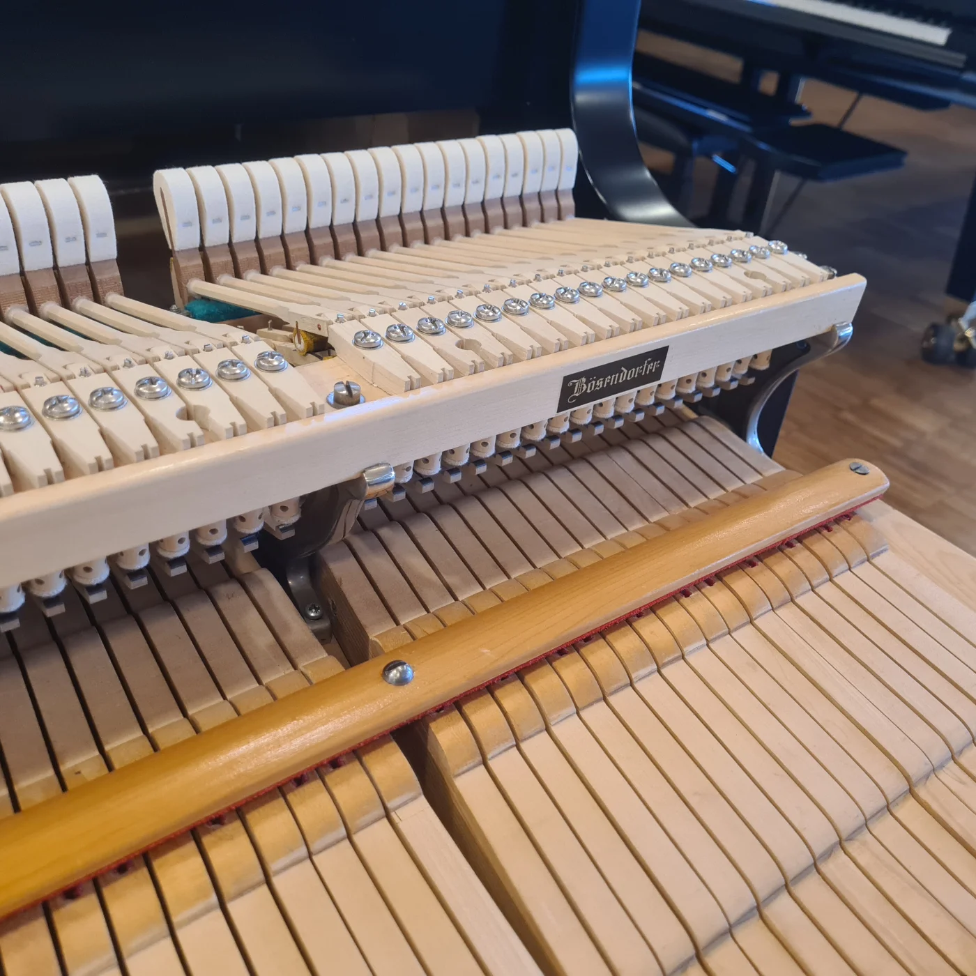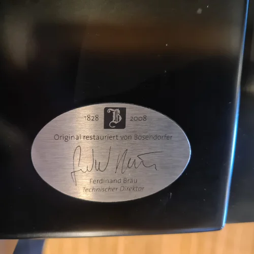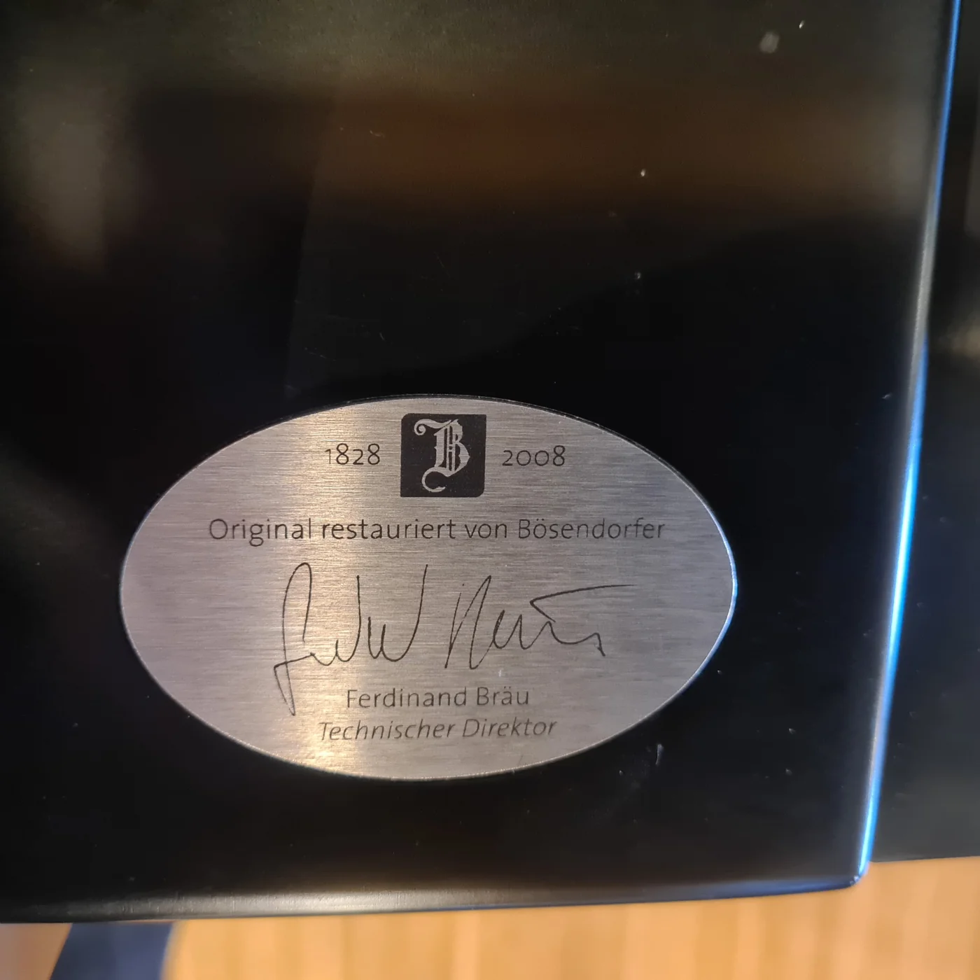 Dieser unglaublich schöne Bösendorfer Imperial wurde bei Bösendorfer im Jahre 2008 mit einem sehr  hohen Aufwand neu aufgebaut und seitdem ausschließlich 1-2 mal pro Jahr Im Konzert gespielt. Der Imperial wurde 1910 an die Akademie (Musikuni Wien) geliefert und von dort von Bösendorfer zurückgekauft. Der Neuaufbau des Instruments umfasste u.a. den Einbau eines neues Resonanzbodens, eines neuen Stimmstocks und neuer Stege. Ebenso wurde eine komplett neue RENNER-Mechanik verbaut. Im Ergebnis entstand ein Imperial, der im besten Sinn die Tugenden der "alten" Bösendorfer-Flügel mit ihrem unvergleichlichen Timbre  mit den Anforderungen moderner Pianistik verbindet. Hier bleibt klanglich nichts unmöglich, das dynamische Spektrum ist riesig und läßt sich beispiellos von unten vom ppp heraus steigern.