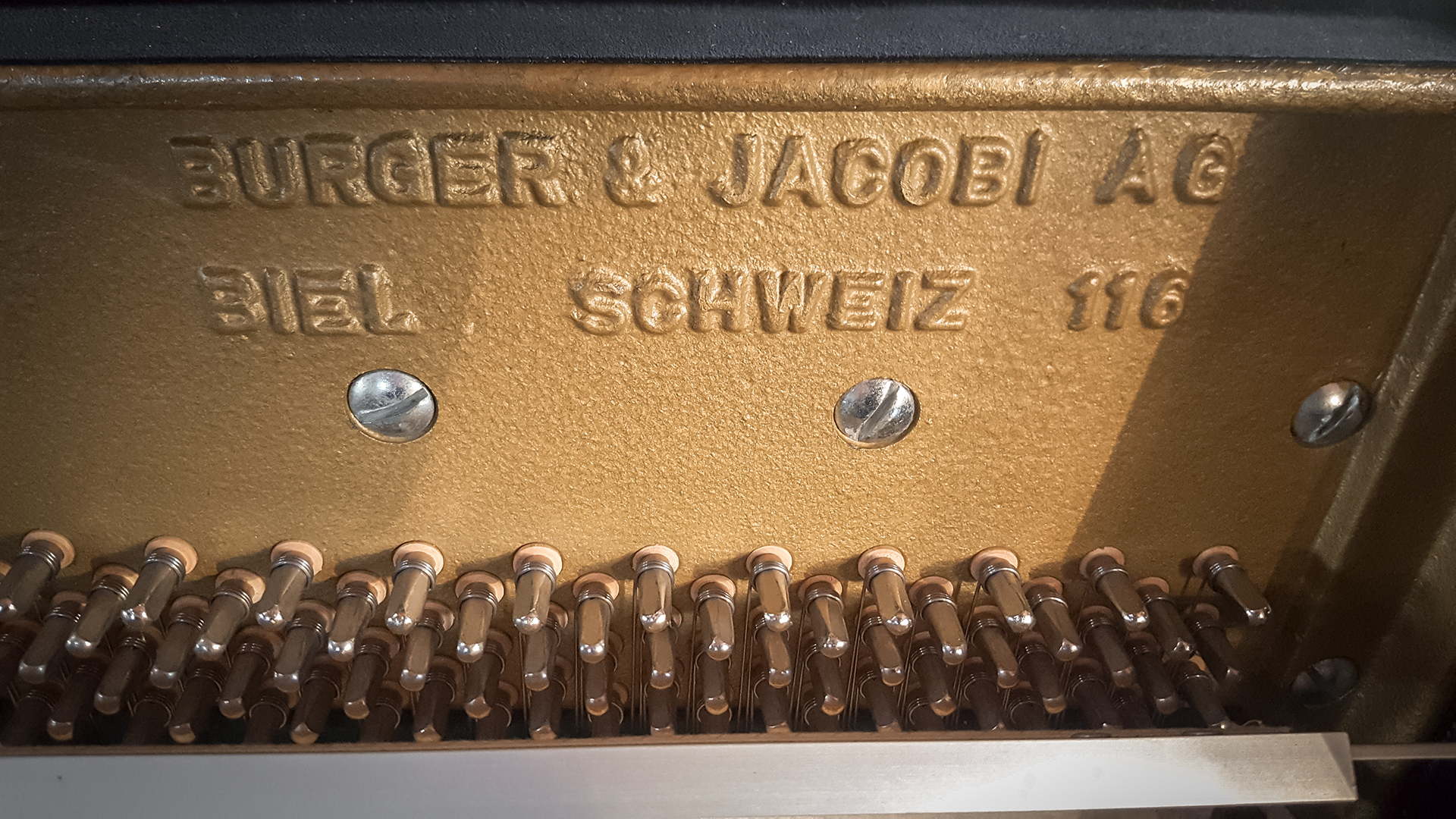 Tonlich ging man bei Burger & Jacobi allerdings einen anderen Weg als die Kollegen aus Braunschweig: ein Klavier der leisen, feinen Töne, mit quasi "unendlichem" Sustain im Diskant. Schade, dass man so selten auf Klaviere aus der Schweiz trifft!