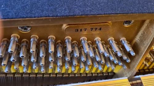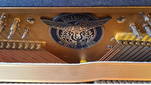 Schönes, bei Petrof für BECHSTEIN gebautes 120er in sachlicher Konsolenform. Im Vergleich zum Petrof-Urmodell hat dieses Klavier eine leicht andere Mensur, die einen etwas kernigeren Ton begünstigt. Die zusätzliche Rastenspreize dürfte allerdings eher dekorativ als statisch bedeutsam sein. Wie fast alles von Petrof sehr empfehlenswert!