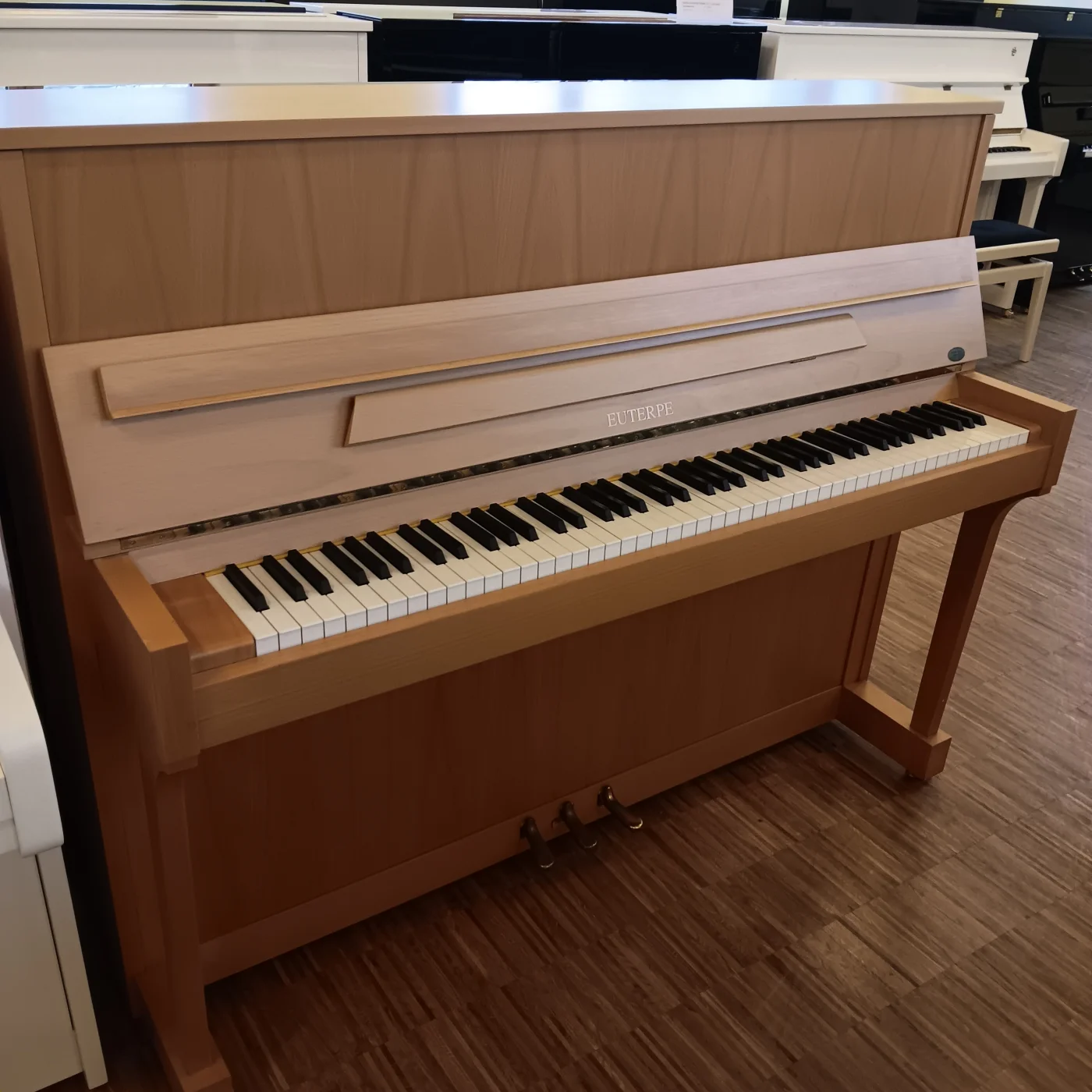 Unser Euterpe 120 prästentiert sich vollständig gewartet mit großer Mechanikinspektion und gepflegtem Gehäuse. Es wurde wenig gespielt und macht in jedem Umfeld, wo es optisch hineinpasst, eine gute Figur. Egal, og Institutiuon oder Privathaushalt: viel Klavier fürs Geld bekommt man auf jeden Fall!