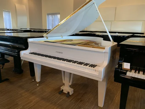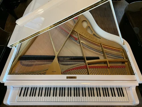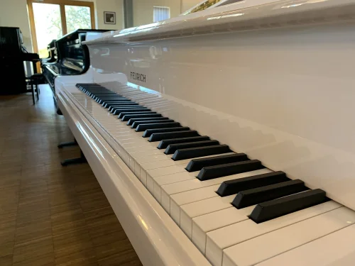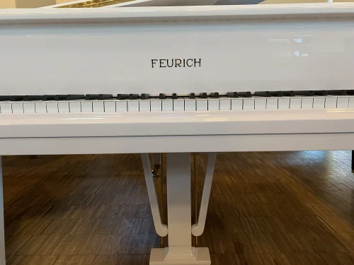 Schöner Flügel in neu aufgebauter, weiß polierter Polyesteroberfläche. Selten hat ein Markenname in jüngerer Zeit weniger Rückschlüsse auf die Herkunft eines Produkts zugelassen als dieser, unser Feurich-Flügel ist jedenfalls zu 100% made in Germany. Wir haben das Instrument für eine neuen Schimmel-Flügel gern in Zahlung genommen. Neubesaitung, Gussplatte neu lackiert, Klaviatur überholt, neu befilzte Hammerköpfe und neue Hammerrollen runden das Bild ab.