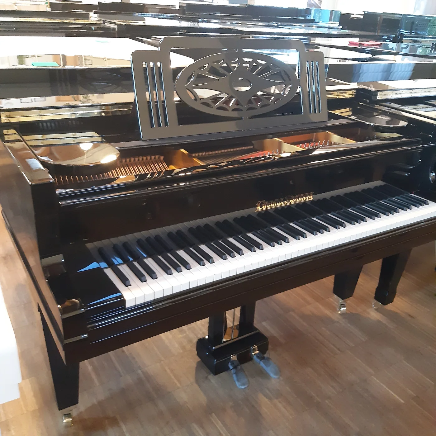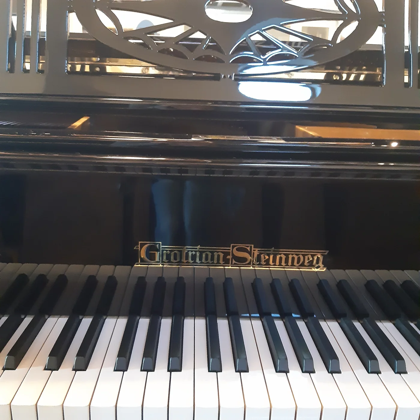 Traumhafter Grotrian-Steinweg Flügel, komplett neu aufgebaut. Neue Oberfläche, Gussplatte sandgestrahlt, gefüllert und neu lackiert, neuer Stimmstock, neue Saiten und Stimmwirbel, Hammerfilze, Hamerrollen und Klaviaturgarnierungen neu und perfekt ausgearbeitet. Dieses Instrument hat den wundervollen Goldklang, der so typisch vor allem für ältere Grotrian-Steinweg Instrumente ist und für den sie berühmt sind.