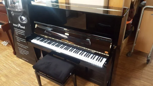 Schönes, bei Petrof gebautes 125 cm- Klavier in schwarz poliert aus 2. Hand aus Inzahlungnahme für ein gehobenes Yamaha Silent Klavier. Große Mechanikinspektion der RENNER-Mechanik, Gehäuseaufbereitung in unserer Oberflächenabteilung in Neuzustand ist erfolgt. Gesamtzustand 1-2 , ein rundum gelungenes Angebot durchaus für gehobene Ansprüche.