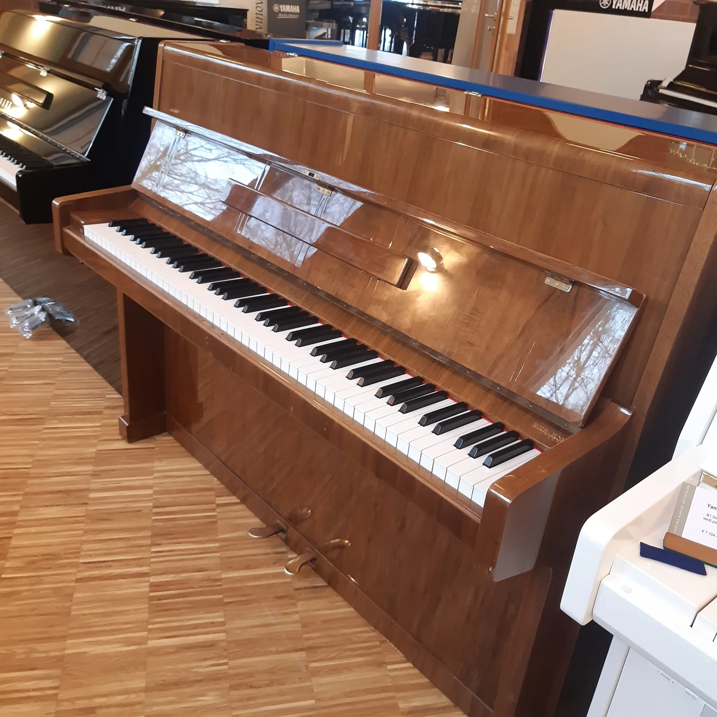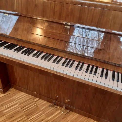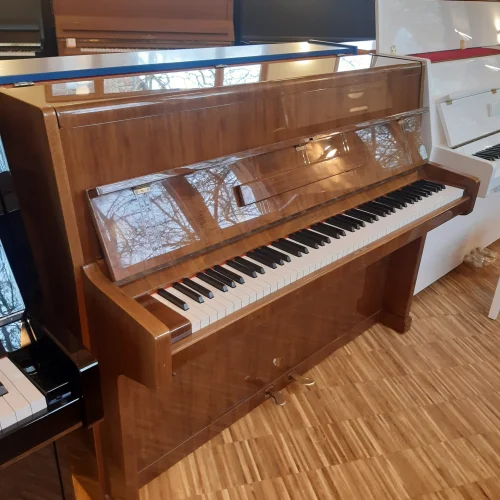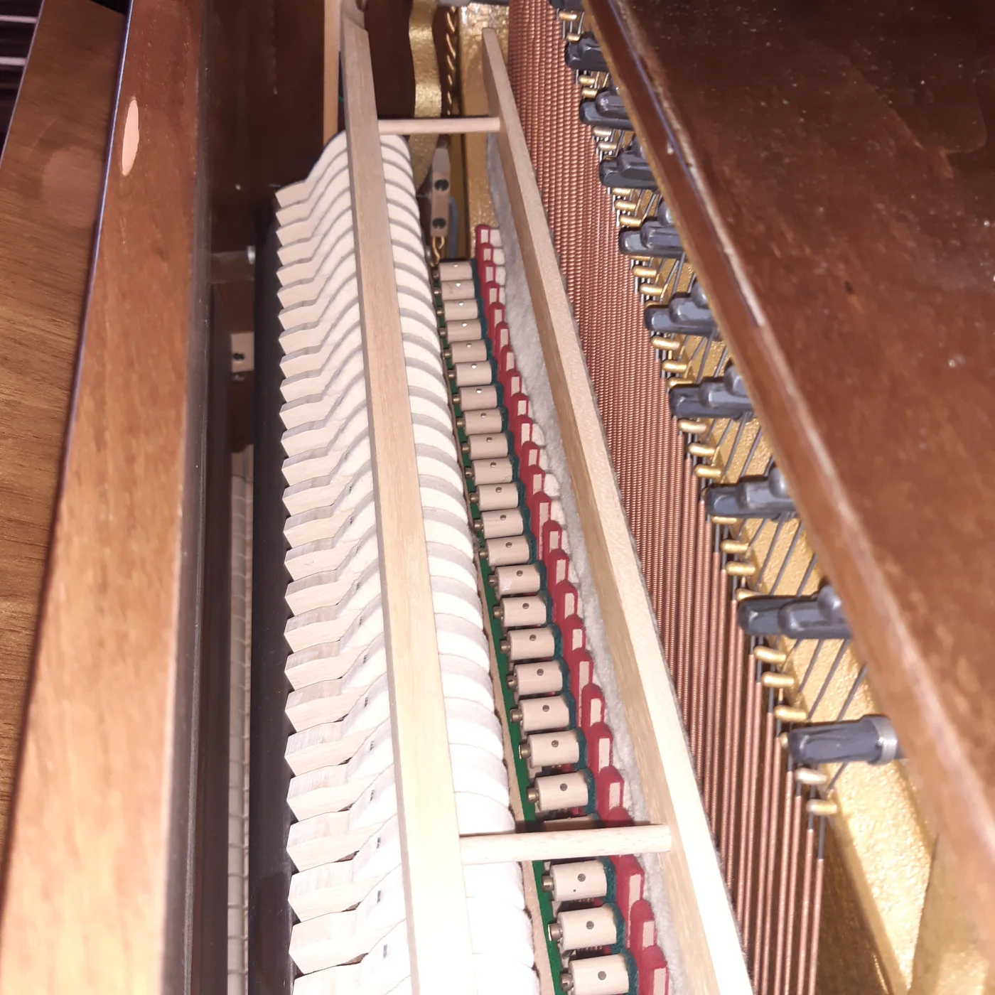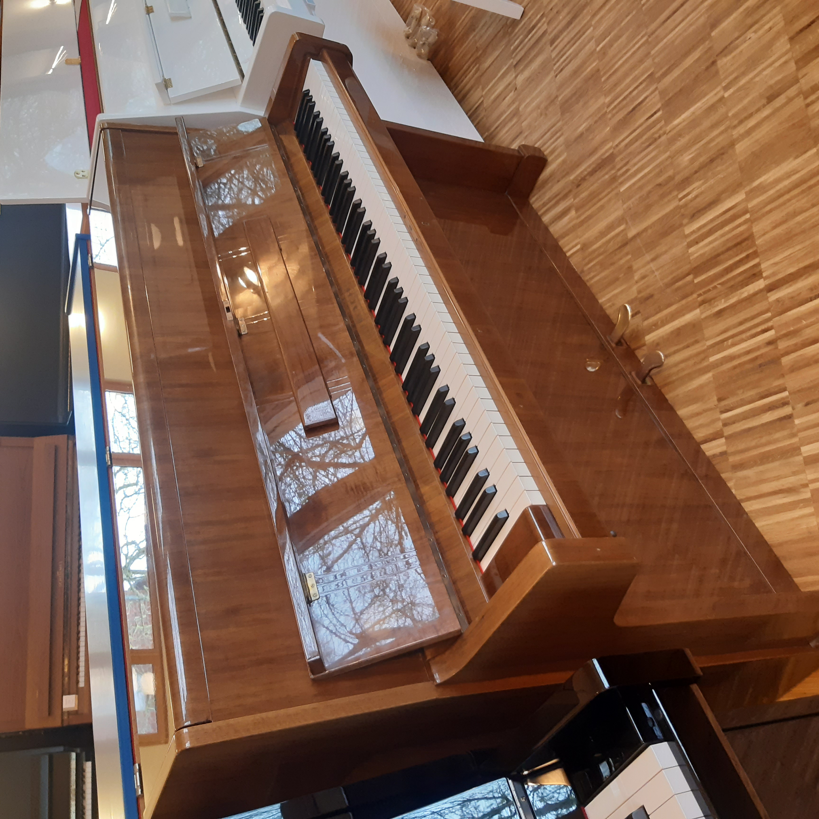Gutes Kleinklavier aus Deutschlands ältester Klaviermanufaktur aus Inzahlungnahme für einen Grotrian-Steinweg Flügel. Das Instrument hat vor 4 Jahren eine Mechanikinspetion mit Neubefilzung der Hammerköpfe bekommen und ist somit technisch für die nächsten Jahrzehnte "auf Stand". Das Gehäuse in Nussbaum poliert weist altersgerechte Gebrauchsspuren auf und macht einen ordentlichen Gesamteindruck. Insgesamt ein sehr gutes Preis-Leistungsverhältnis für Kunden, denen eine gute Alltagstauglichkeit und ein schöner Klang wichtiger ist als ein schwarz poliertes Gehäuse!