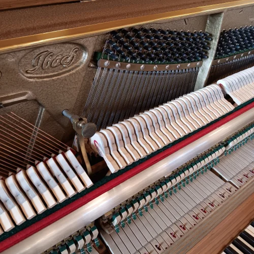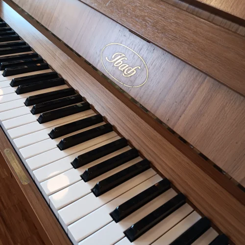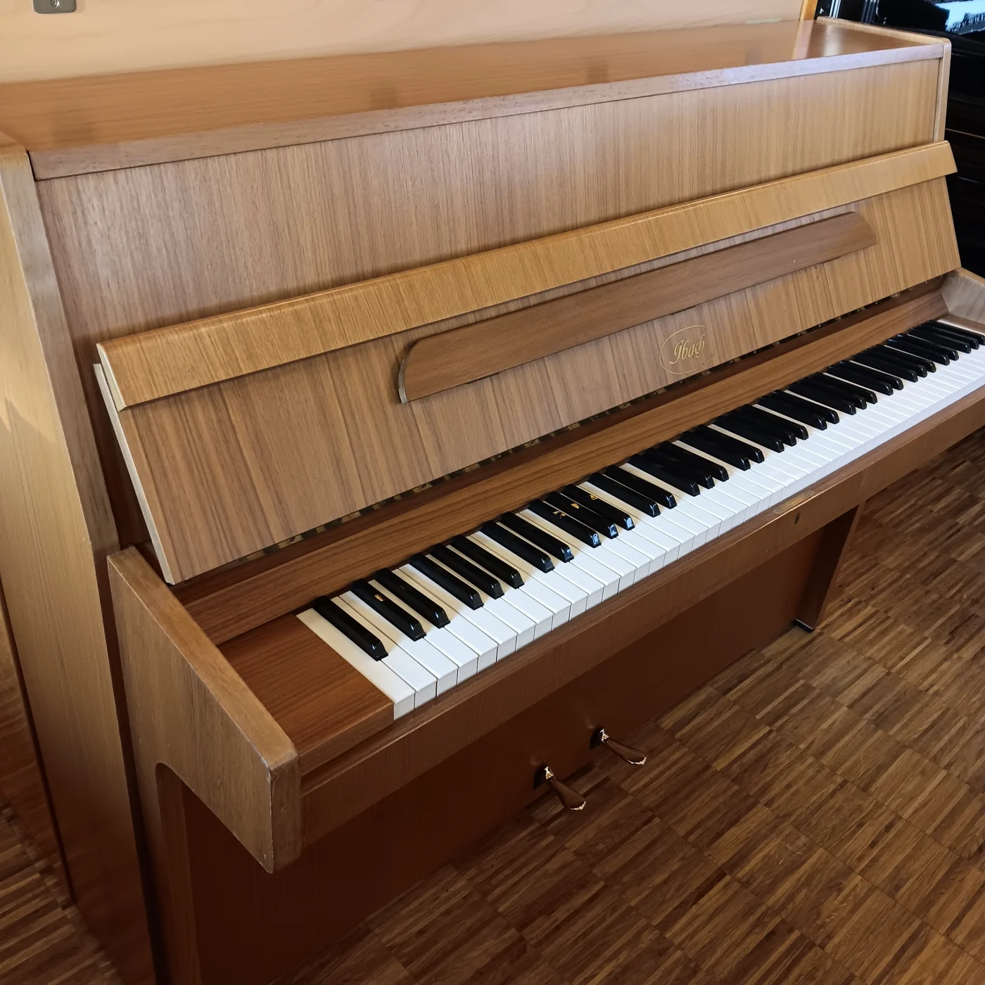 Sehr klangvolles, 112 cm hohes Ibach-Klavier in Nussbaum satiniert aus erster Hand. In unserer Meisterwerkstatt wurde die Technik überholt, die Mechanik demontiert, die Hammerköpfe (zum ersten Mal) abgezogen, Klaviatur und Mechanik durchgearbeitet und einreguliert, es folgen Stimmung und Intonation. Das Gehäuse befindet sich im Originalzustand 2, auffrischen der Holzoberfläche sowie polieren der Messingteile gehören bei uns zum Standard.