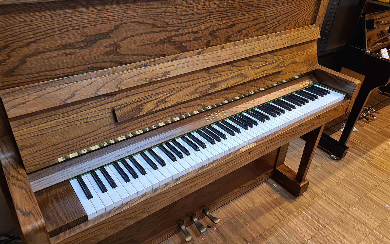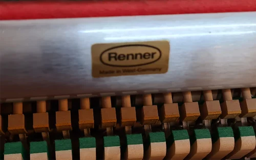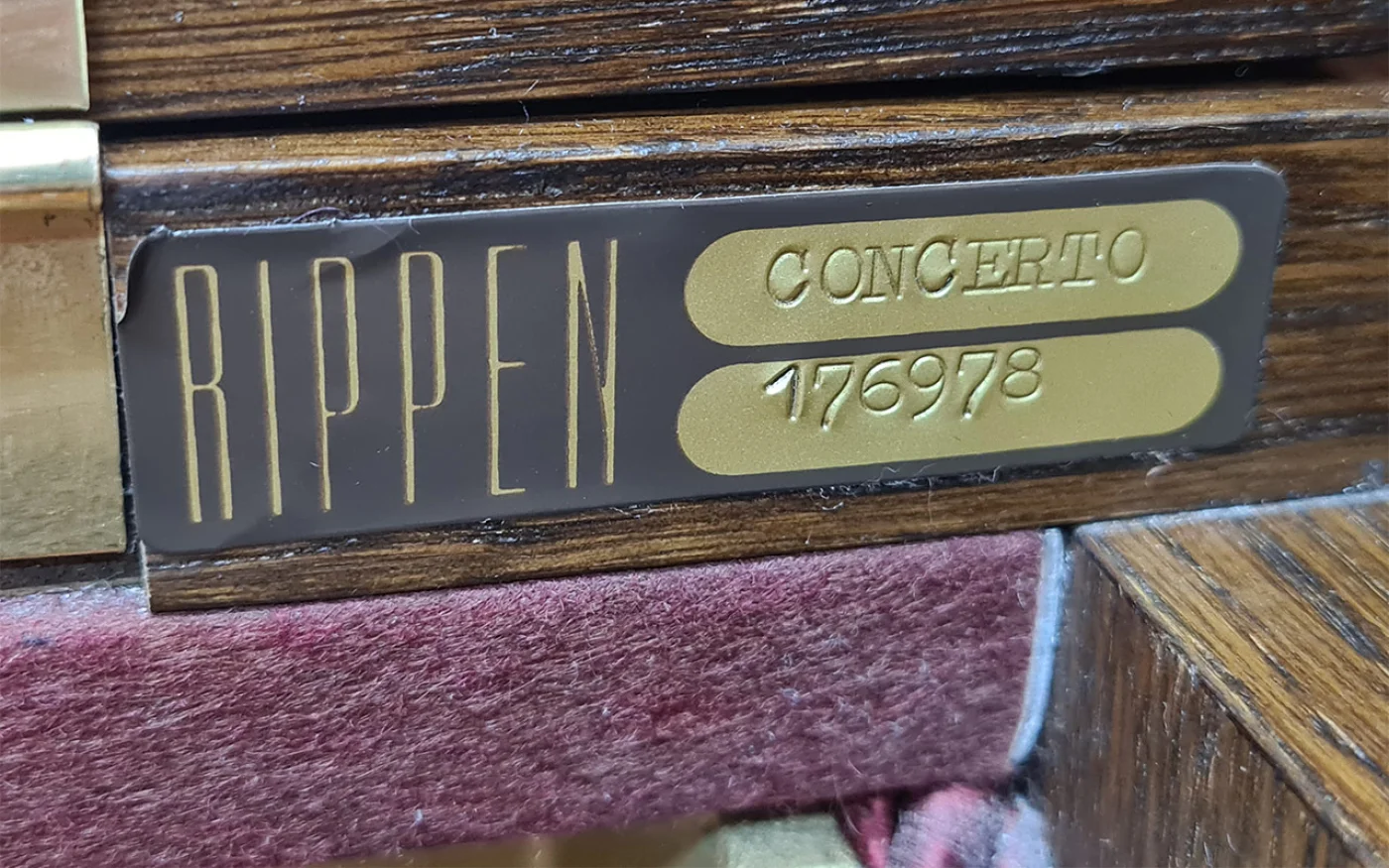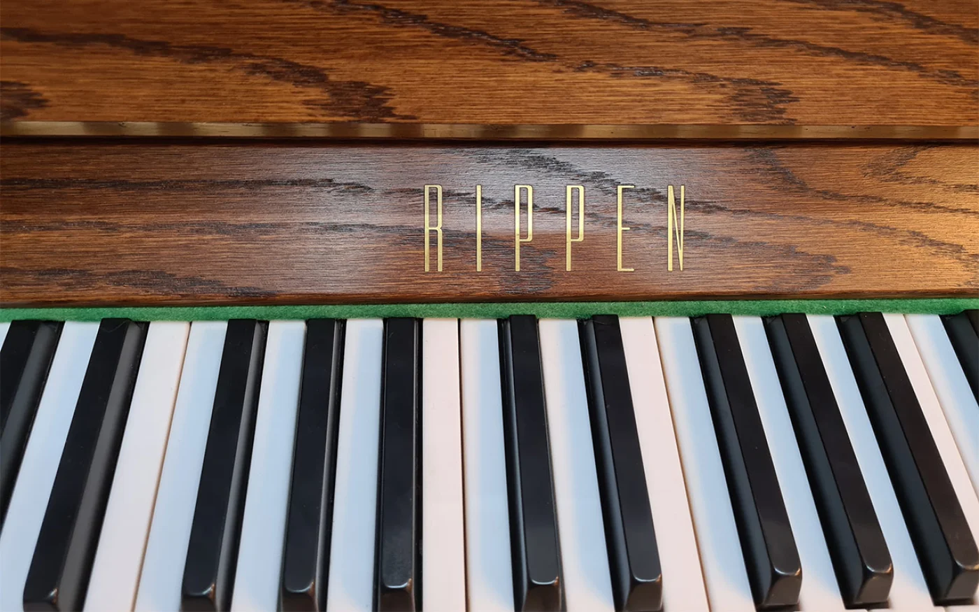 Rippen kann auch anders: repräsentatives Klavier beachtlicher Größe von 124 cm mit RENNER-Mechanik (!) von 1982. Aus erster Hand erhielt dieses Klavier eine Mechanikinspektion in unserer Meisterwerkstatt. Satte Bässe, angenehme Mittellage. Rippen baute nicht nur Kleinklaviere...