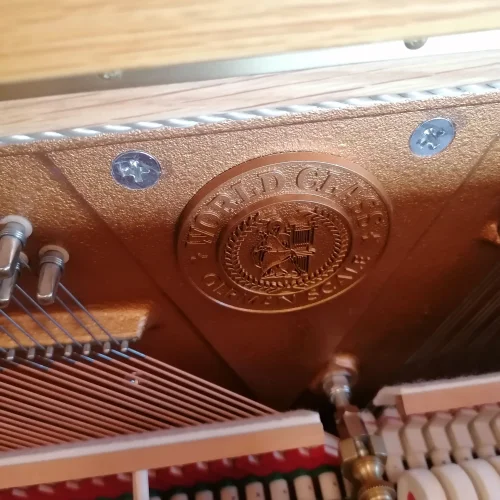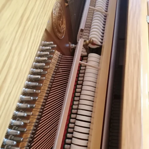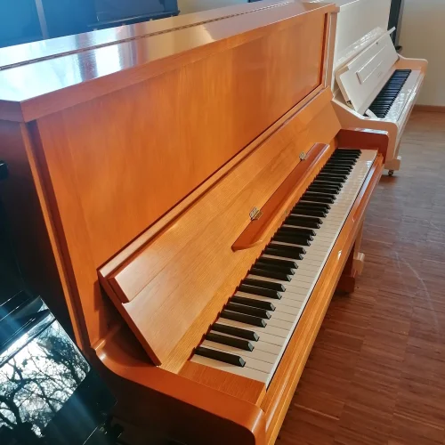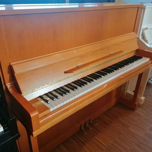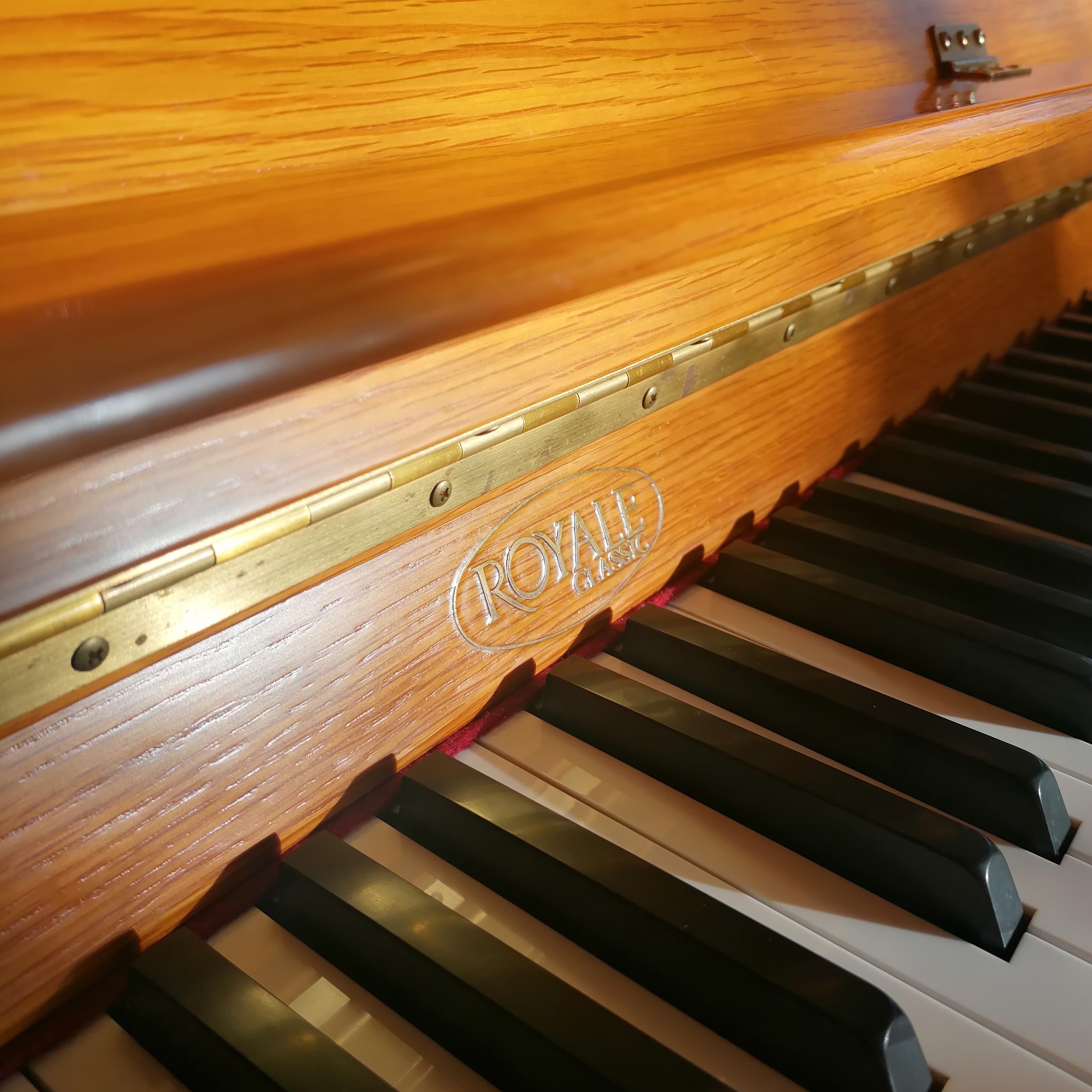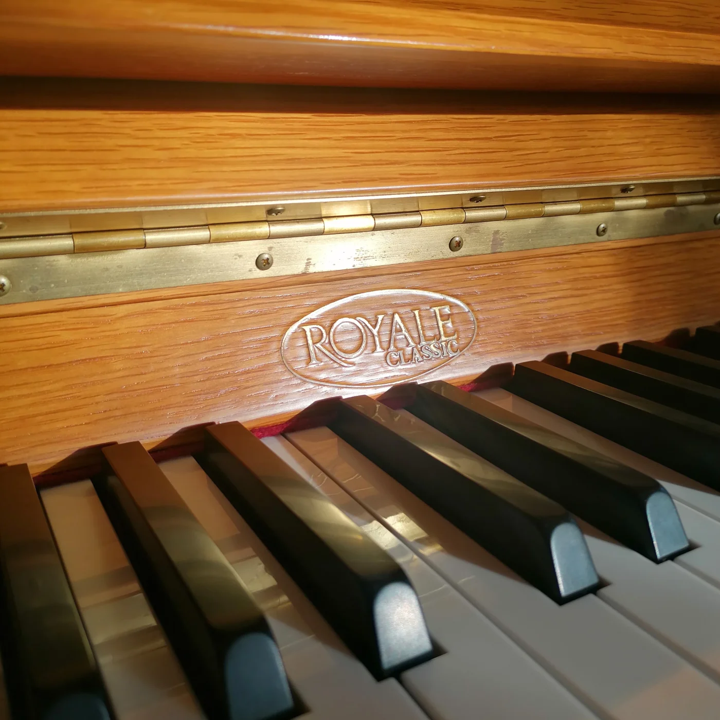 Schönes, in Südkorea gebautes Konsolenklavier in soliden 120 cm Bauhöhe in Eiche seidenglänzend. Die verbaute RENNER-Mechanik zeigt neben vielen anderen Details, wie eng die Hersteller Ibach und Royale verbunden waren und was man sich in Korea leisten wollte. Nach großer Mechanikinspektion ein gut auskonstruiertes, klangstarkes Klavier mit hervorragendem Preis-Leistugsverhältnis!