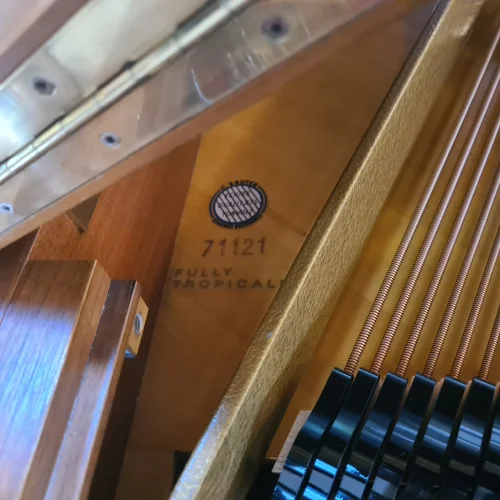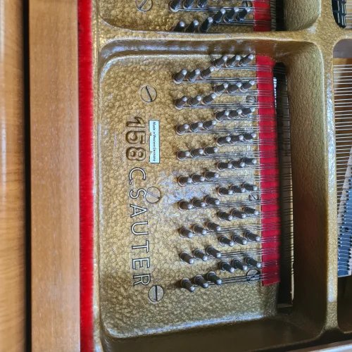 Selten, aber umso schöner möchten wir Ihnen hier einen kleinen Flügel aus der Spaichinger Manufaktur Sauter vorstellen, der einmal nicht schwarz oder weiß ist. Der 158 cm lange Flügel in gut erhaltenem und schön gemasertem Nussbaum stammt aus gepflegtem Besitz und wurde aus Platzgründen veräußert. Die wenig gespielte RENNER-Mechanik erfuhr in unserer Meisterwerkstatt eine Überholung der Originalsubstanz und erfreut durch angenehme, äußerst präzise und leichtgängige Spielart. Überhaupt verzaubert dieser kleine, aber gut Flügel mit knapp 160 cm Länge durch eine gute Ausgeglichenheit, ein großes dynamisches Spektrum und einen schönen, glockigen Klang mit gewisser Noblesse.