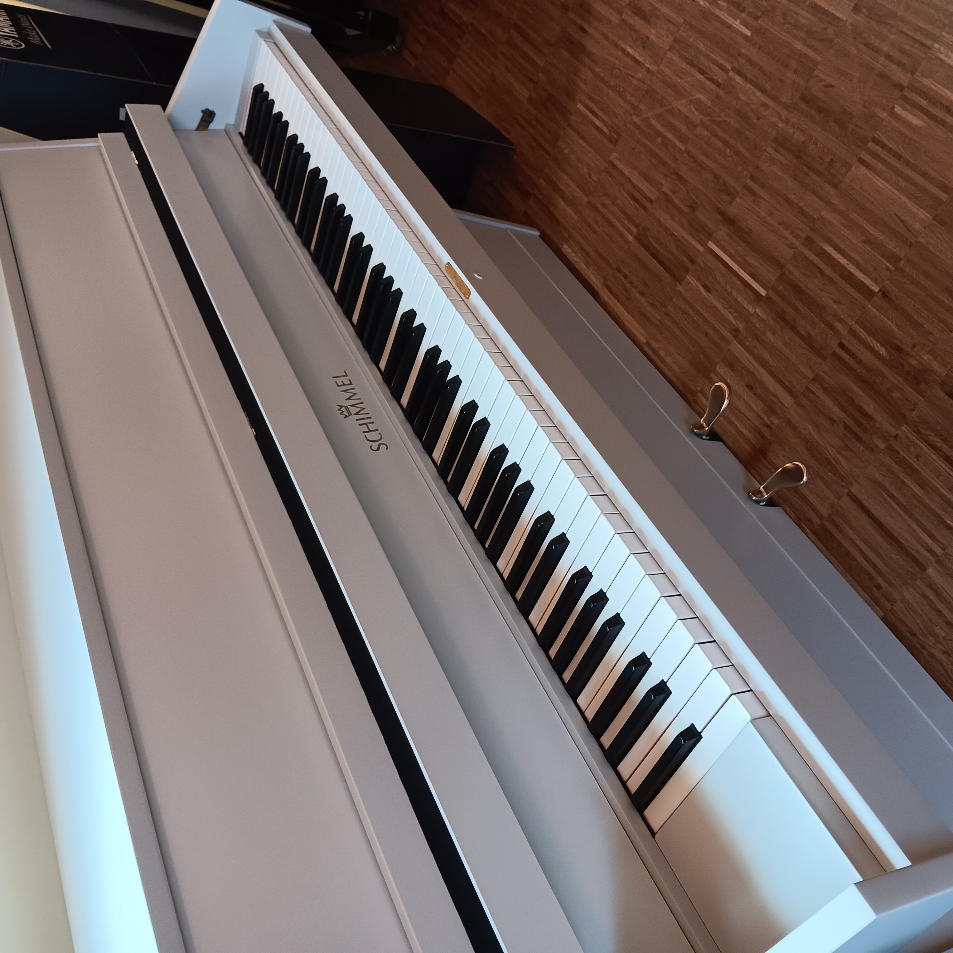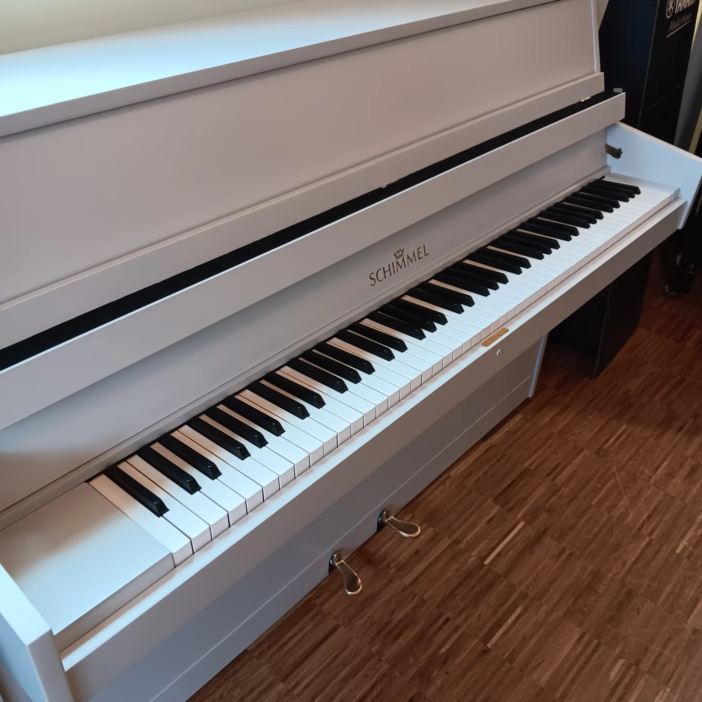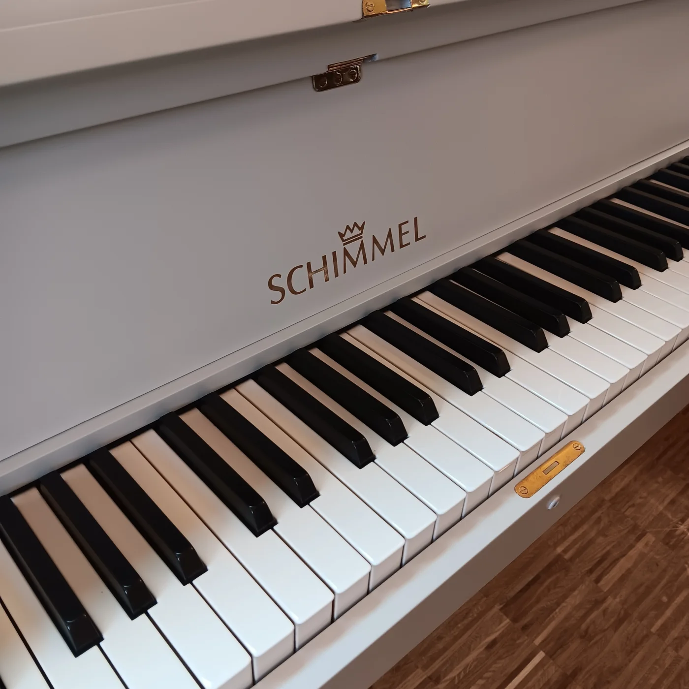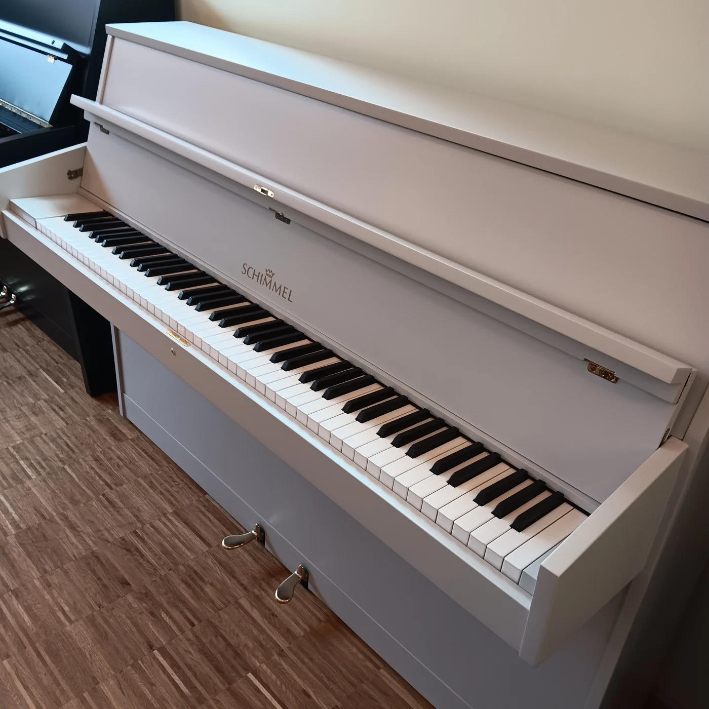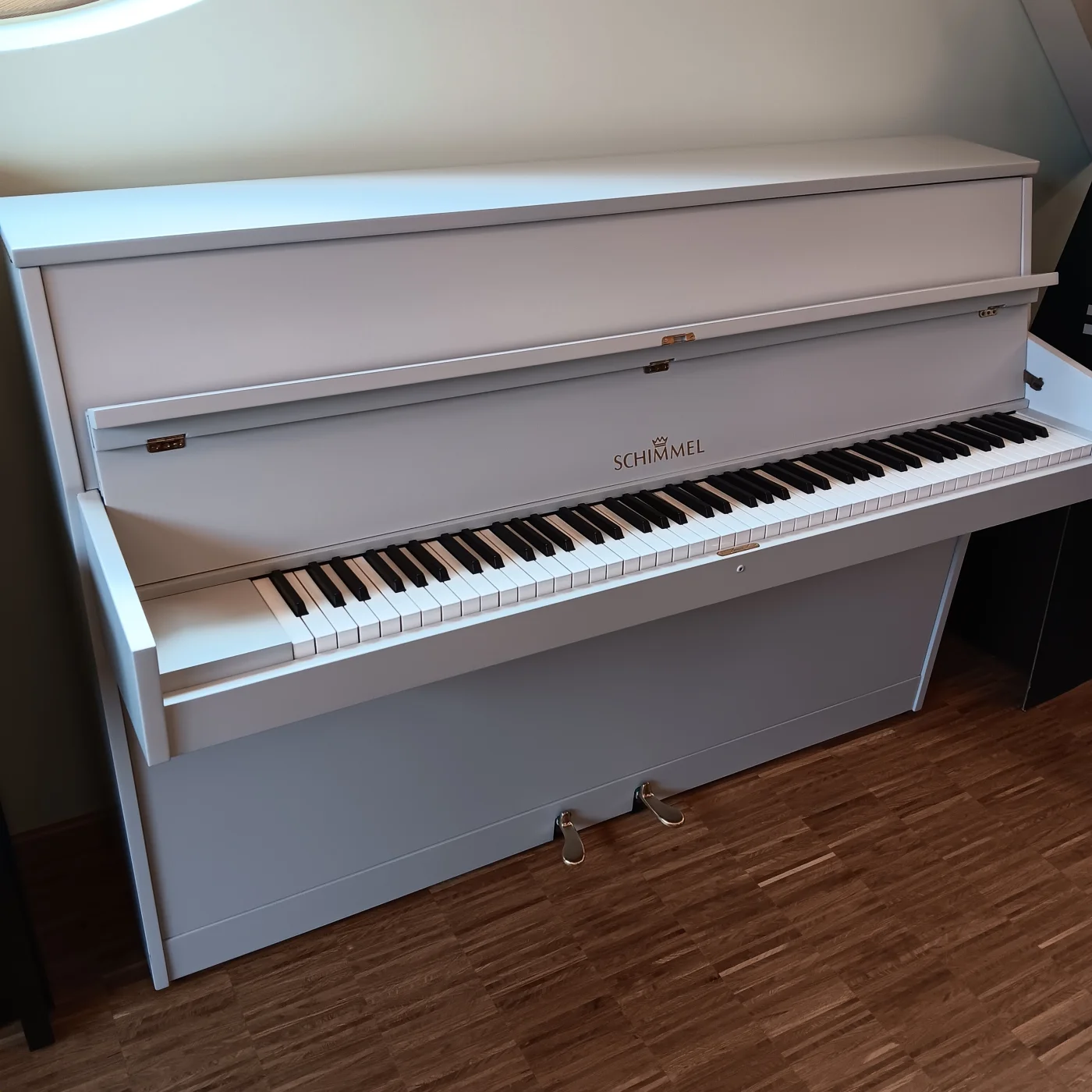 Kompaktes Kleinklavier aus dem Hause SCHIMMEL, technisch überholt und in komplett neu lackiertem Gehäuse in Kieselgrau. SCHIMMEL war in den 1960 und -70er Jahren unangefochten führend im europäischen Kleinklavierbau und stellte robuste, klangstarke und dauerhafte Klangkörper her. In Kombination mir der unverwüstlichen RENNER-Mechanik ist solch ein Instrument auch nach über 50 Jahren, technische Überholung und gute Substanz vorausgesetzt, für jahrzehntelanges weiteres vergnügliches Klavierspiel sehr gut gerüstet. Viel Spass damit!