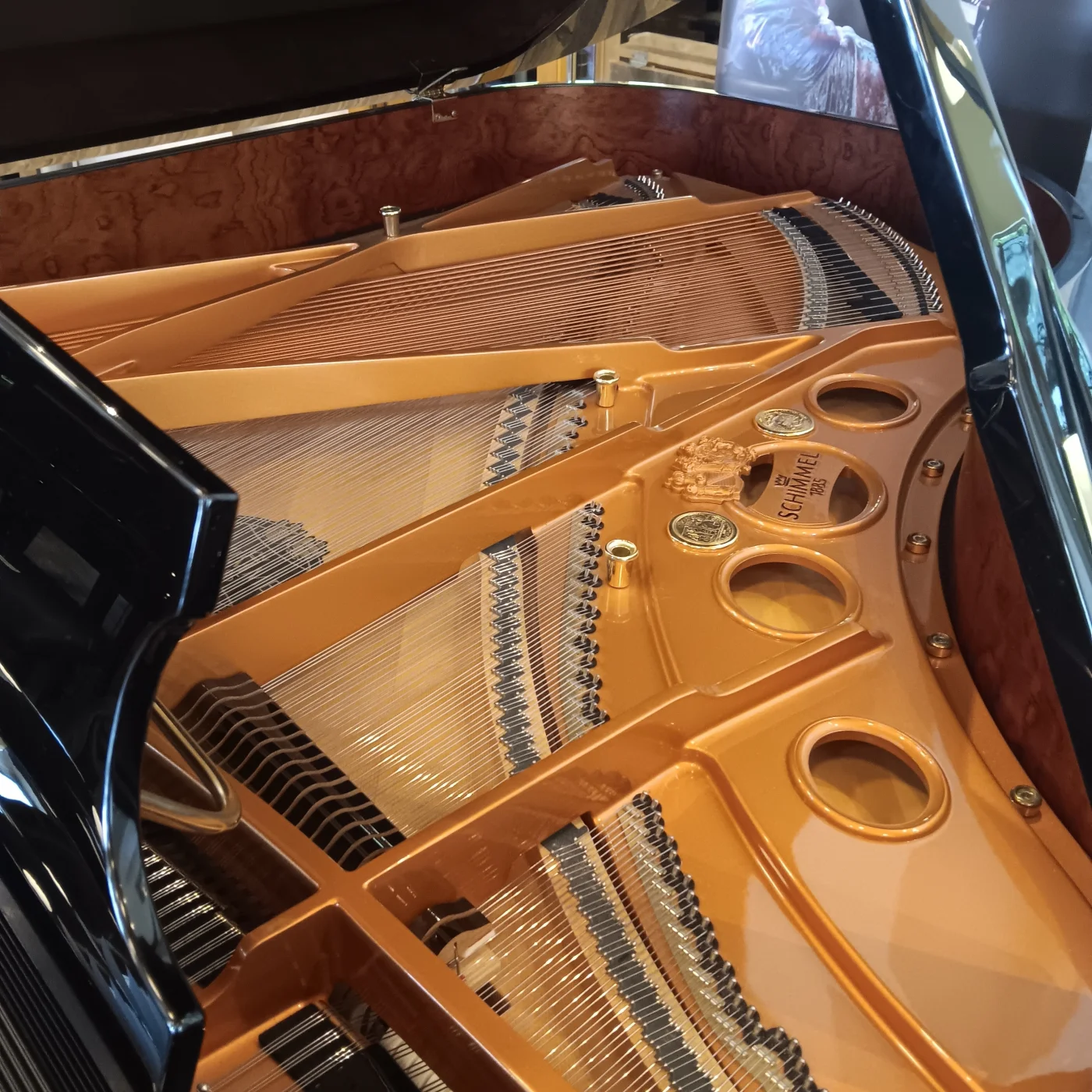 Der Lack unseres Schimmel Konzert 189 jedenfalls, den wir Ihnen hier vorstellen wollen, ist in ganz auzsgezeichnetem Zustand, wie auch der Rest dieses schönen Flügels. Mäßig bespielt und aus Privatbesitz hat er geschätzt ein Fünftel seiner Nutzungssdauer hinter sich, bevor man ihn ernsthaft überholen muss. Also Vorhang auf für 60-80 Jahre ungetrübte Freude am Klavierspiel!