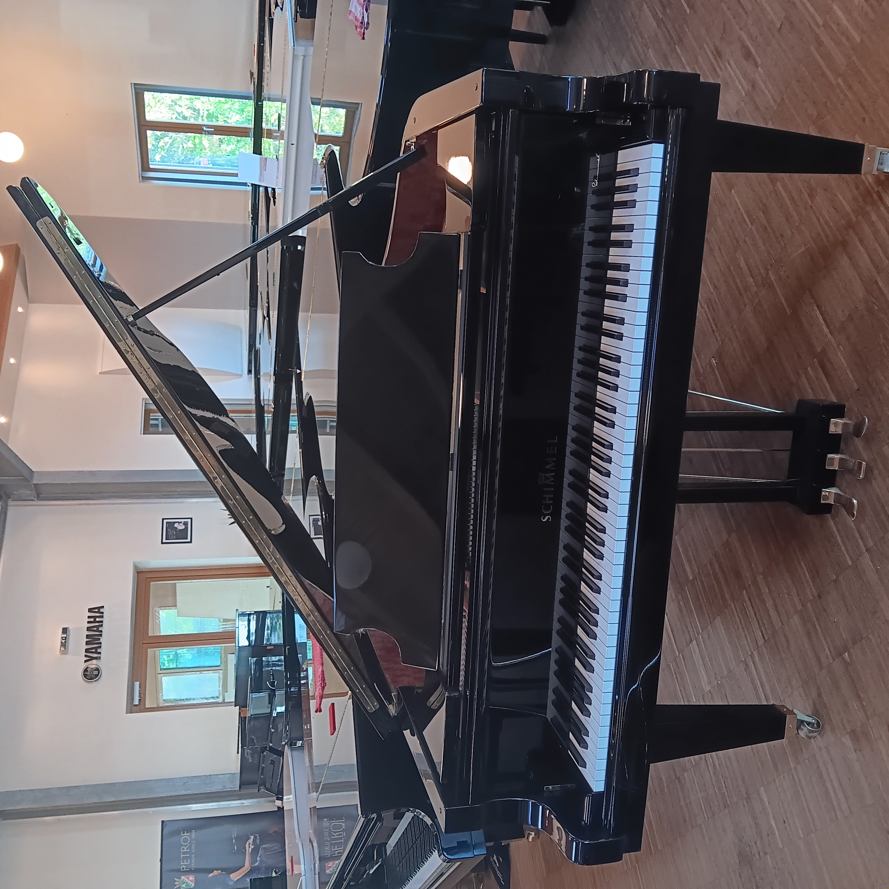 Und noch ein schöner und gepflegter Schimmel Flügel der ersten Serie der Konzert-Flügel in schwarz poliert. Ausgehend vom Modell Konzert 213 cm stellte Schimmel etwa ab dem Jahr 2000 nach und nach die kleineren Modelle 189 und 169 cm vor sowie den Semi-Grand 230 cm. Dieser Aufbruch in eine neue Klasse löste die eher braven Modelle 182 und 208 cm ab und sollte Schimmel in der Premium Liga etablieren.