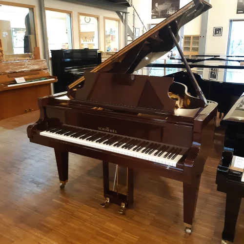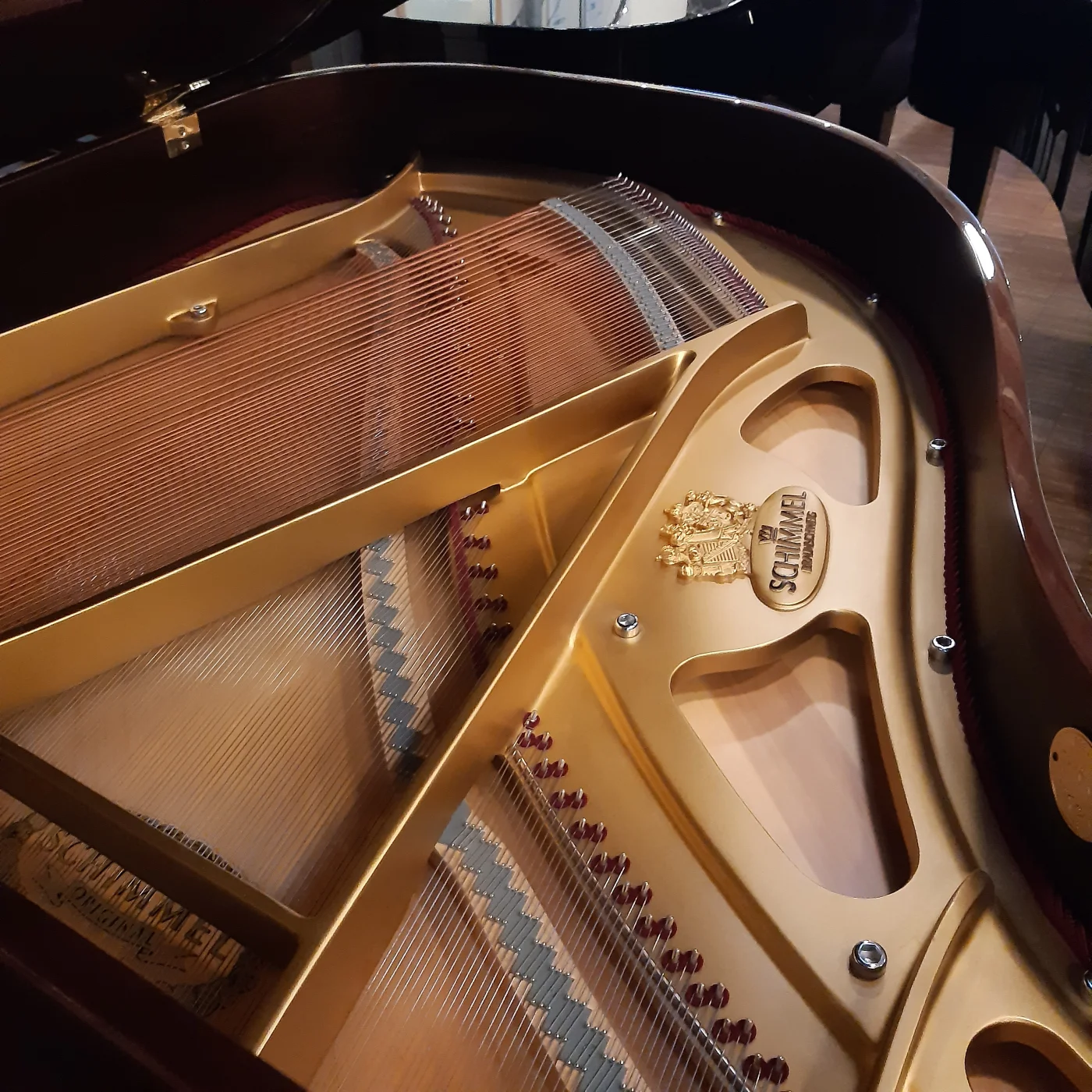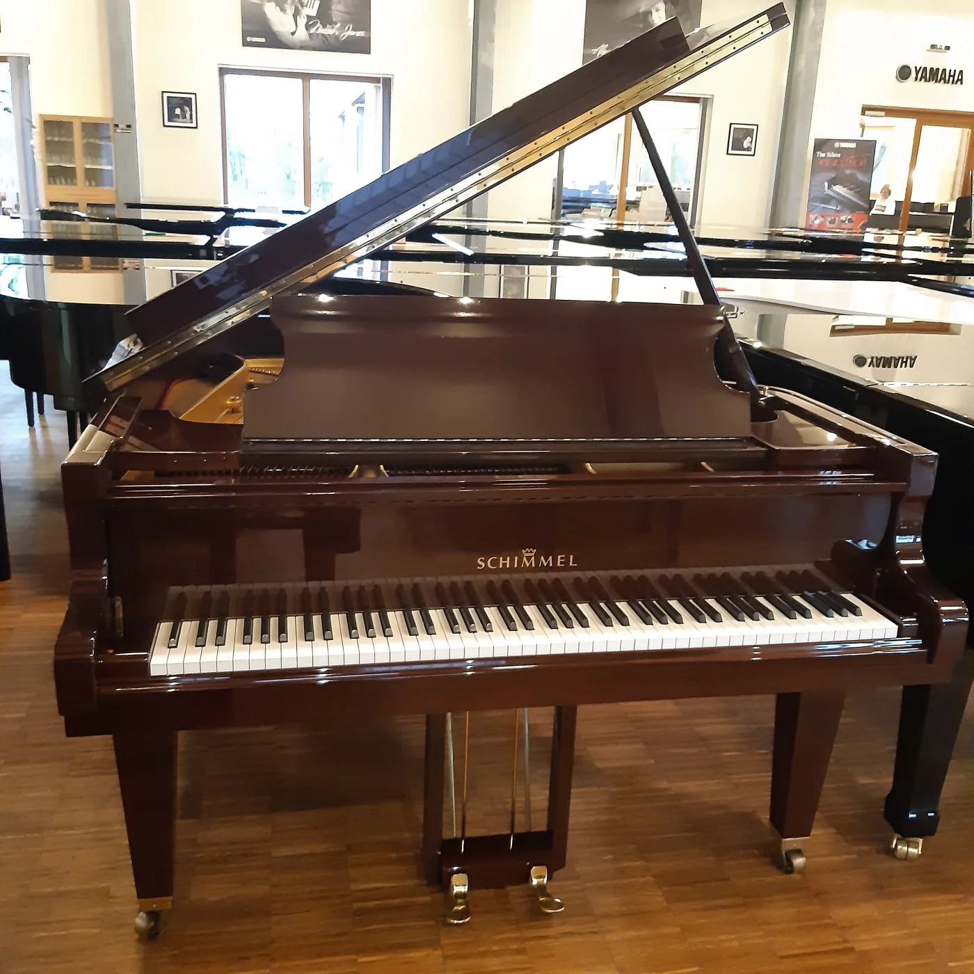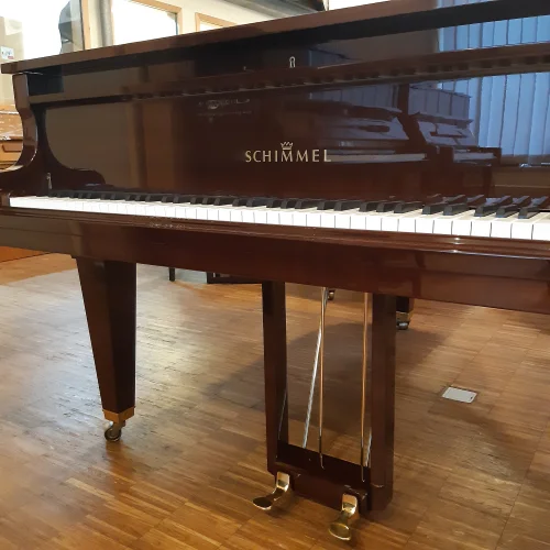 Schöner Flügel in dunklem Mahagoni poliert aus 1. Hand. Das Instrument wurde als typischer "Wohnzimmerflügel" gelegentlich gespielt, aber regelmässig gewartet. Wir haben dem Instrument eine professionelle Überholung der Technik und der Optik angedeihen lassen, mit dem Ergebnis eines sehr guten bis guten Zustand 2+. Der Schimmel Modell 174 cm Flügel wird mit dieser Substanz noch Jahrzehnte seinen Dienst tun. Die originale RENNER-Mechanik spielt sich knackig und präzise.
