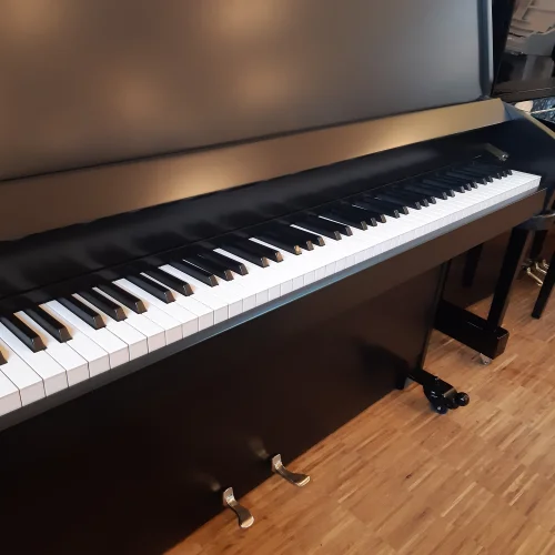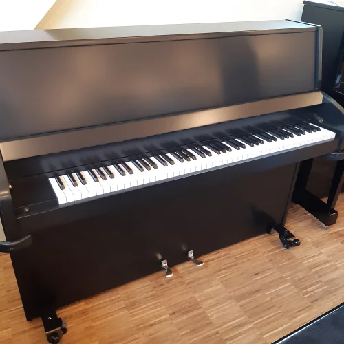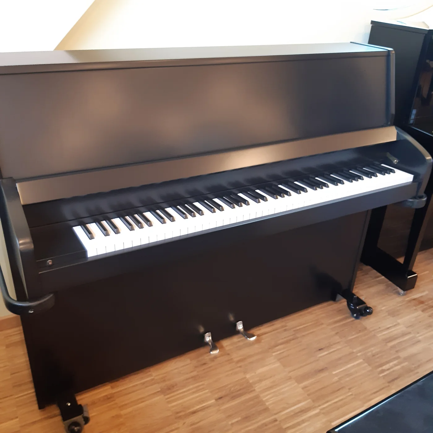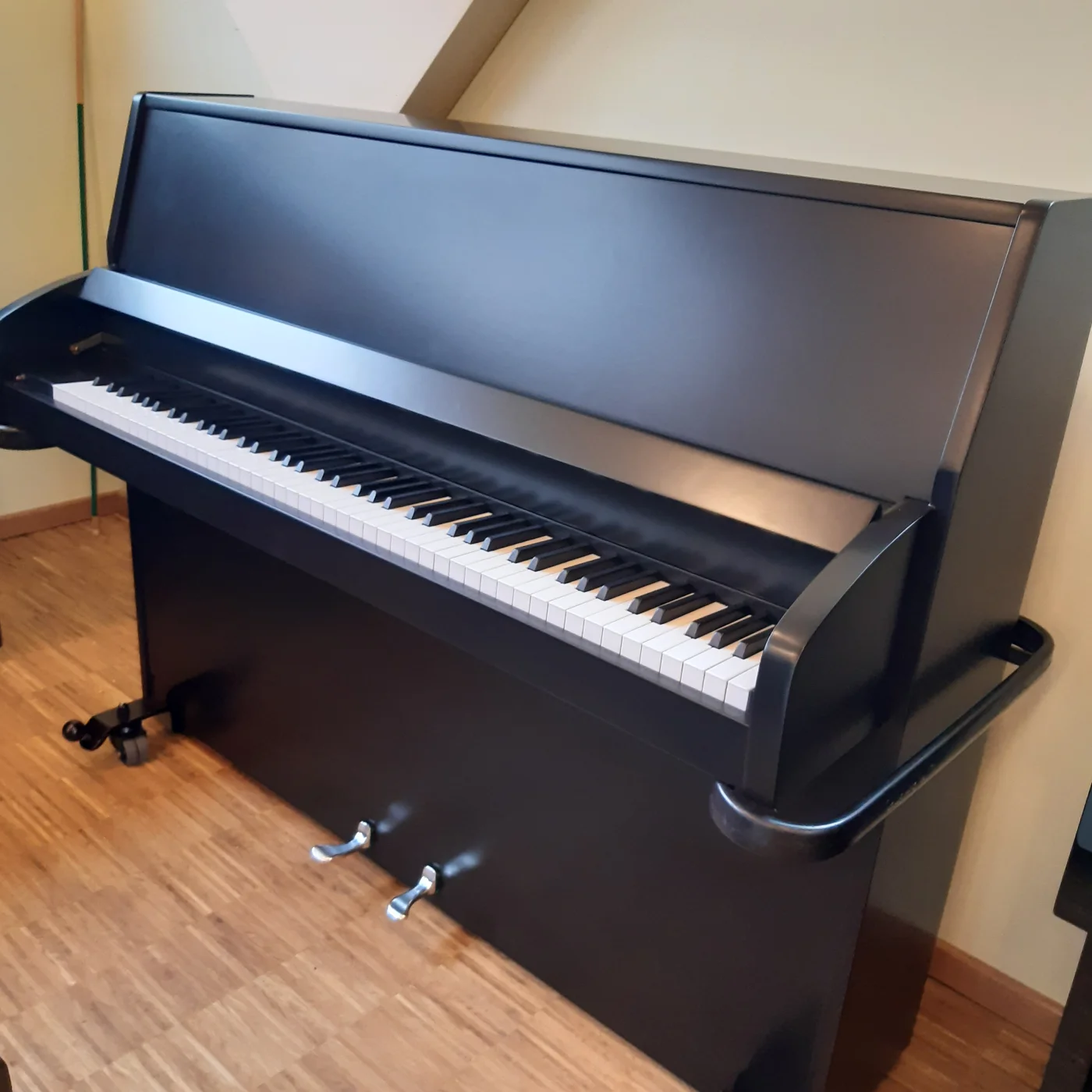 Unser Schimmel-Schulkavier ist mit umweltfreundlichem Wasserlack professionell neu in schwrz seidenmatt lakiert worden und hat eine umfassende technische Überholung mit großer Mechanikinspektion bekommen. Das Instrument ist bereit für die nächsten Jahrzehnte uneingeschränkter Nutzung, auch im Privatbereich können die Features, die Schulen erfreuen, Sinn machen!