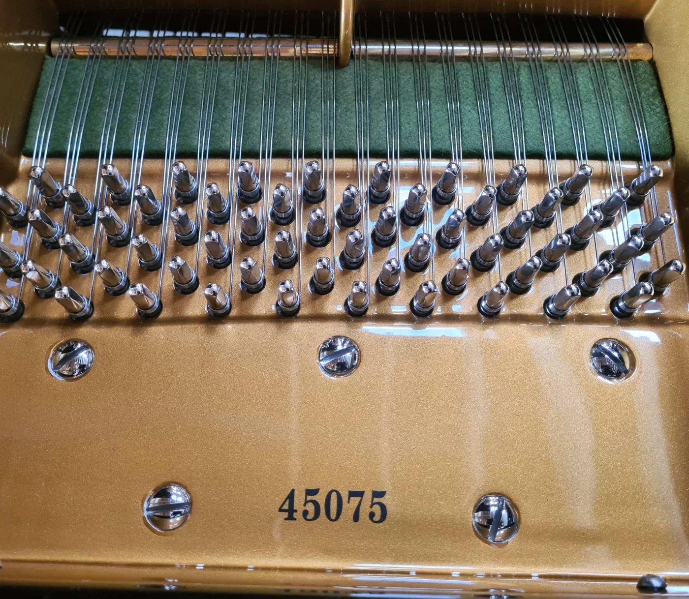 Unser Flügel ist ca. von 1930 und wirklich komplett neu aufgebaut. Eine solche Investition tätigen wir nur, wenn wir von einem Instrument absolut überzeugt sind: neue Oberfläche in Polyester schwarz poliert, Akustische Anlage generalüberholt mit Neubesaitung, Gussplatte sandgestrahlt, gefüllert und neu lakiert, neue Abel- Naturfilz Hammerköpfe, Klaviatur neu belegt, Top-Ausarbeitung. Ein Flügel mit sehr guter klanglicher Substanz, der sich vom Rang her mit heute bekannteren Fabrikaten messen lassen kann!