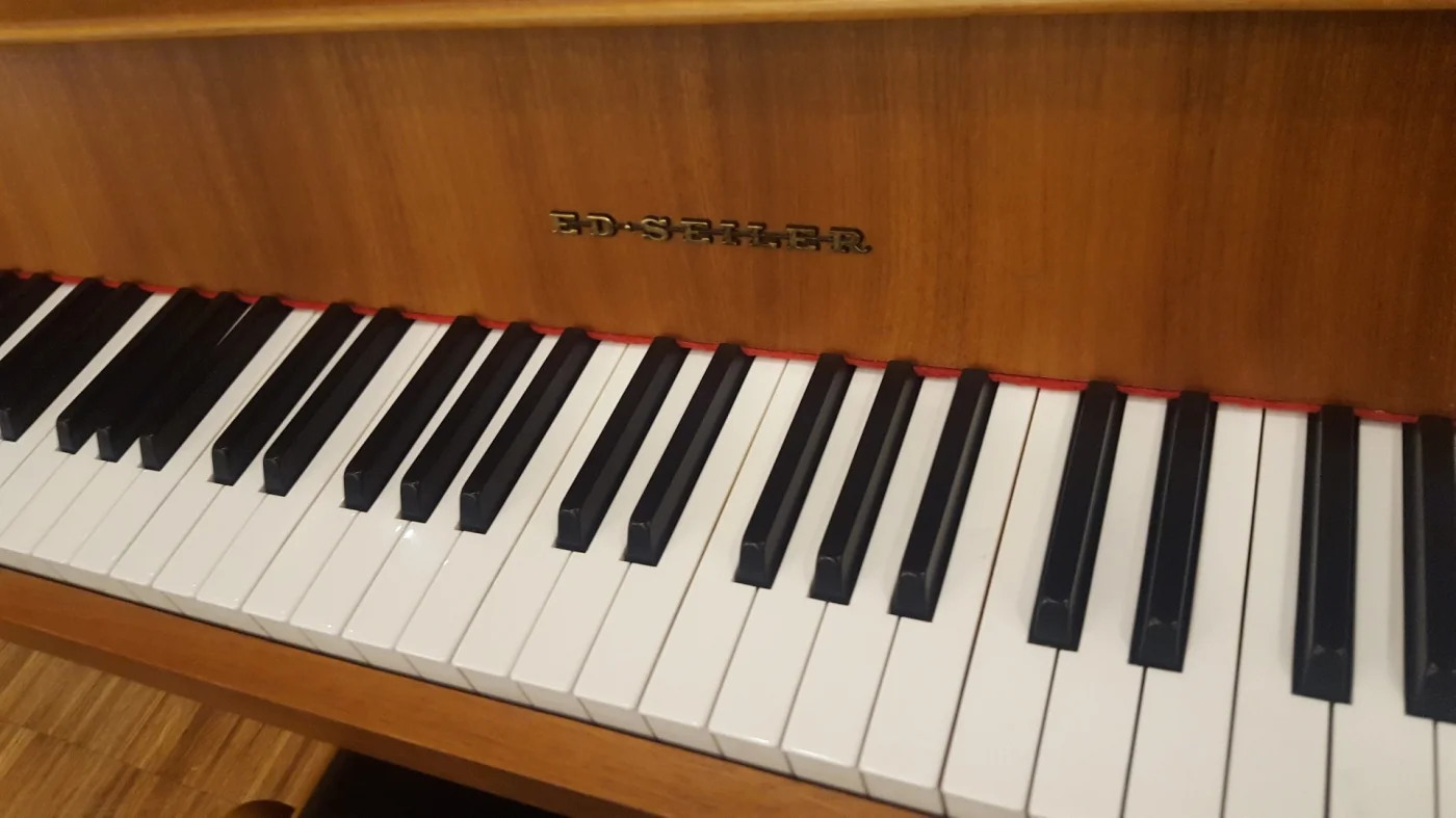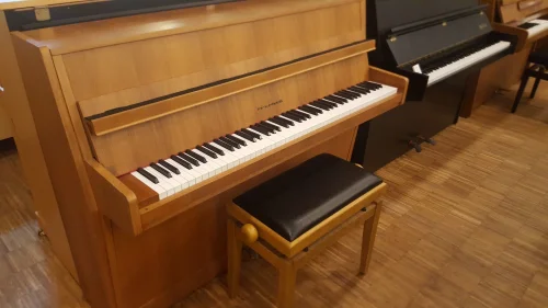 Kleinklavier in schönem Rüsterfurnier von 1968. Dieses Klavier überrascht: das häufigere Modell 112 hat keineswegs den schöneren Klang! Durch Mechanikinspektion mit Abziehen der Hammerköpfe und allen nötigen Arbeiten in unserer Meisterwerkstatt bekommen Sie als Kunde ein zeitlos qualitätsvolles Instrument.