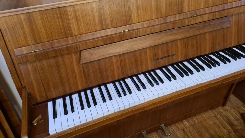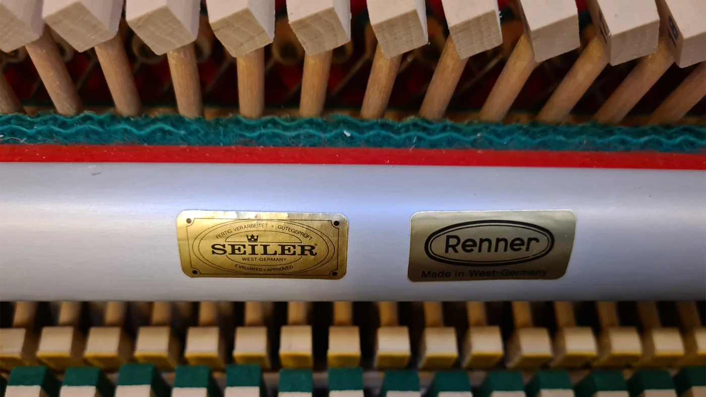 Solides Klavier mit neuer Oberfläche in Nussbaum seidenmatt. Natürlich mit allem an technischer Zuwendung, was es für ein zweites Klavierleben braucht!