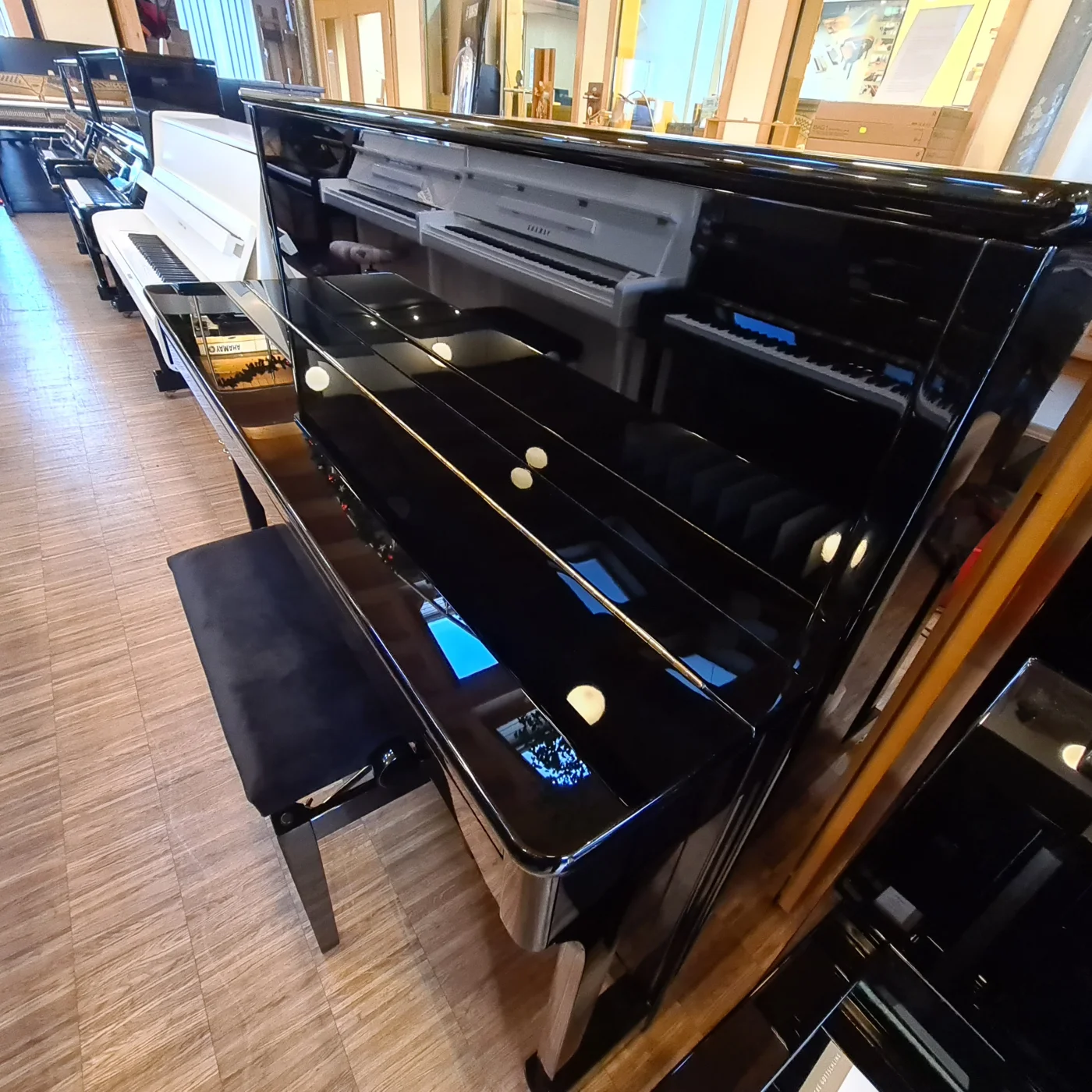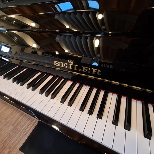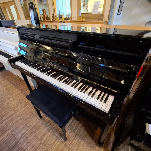 Schwarz poliertes Konsolenmodell, made in Germany. Unser Kunde hat uns dieses Klavier nach 25 Jahren wegen Umzugs an uns zurück verkauft. Nach einer großen Mechanikinspektion und Gehäuseaufbereitung ist dieses schöne Instrument nun anspielbereit. Klarer Klang, viel Dynamik und knackige Spielart zeichnen dieses Instrument aus! Sonderausstattung massive Messingrollen mit PUR-Lauffläche inclusive....