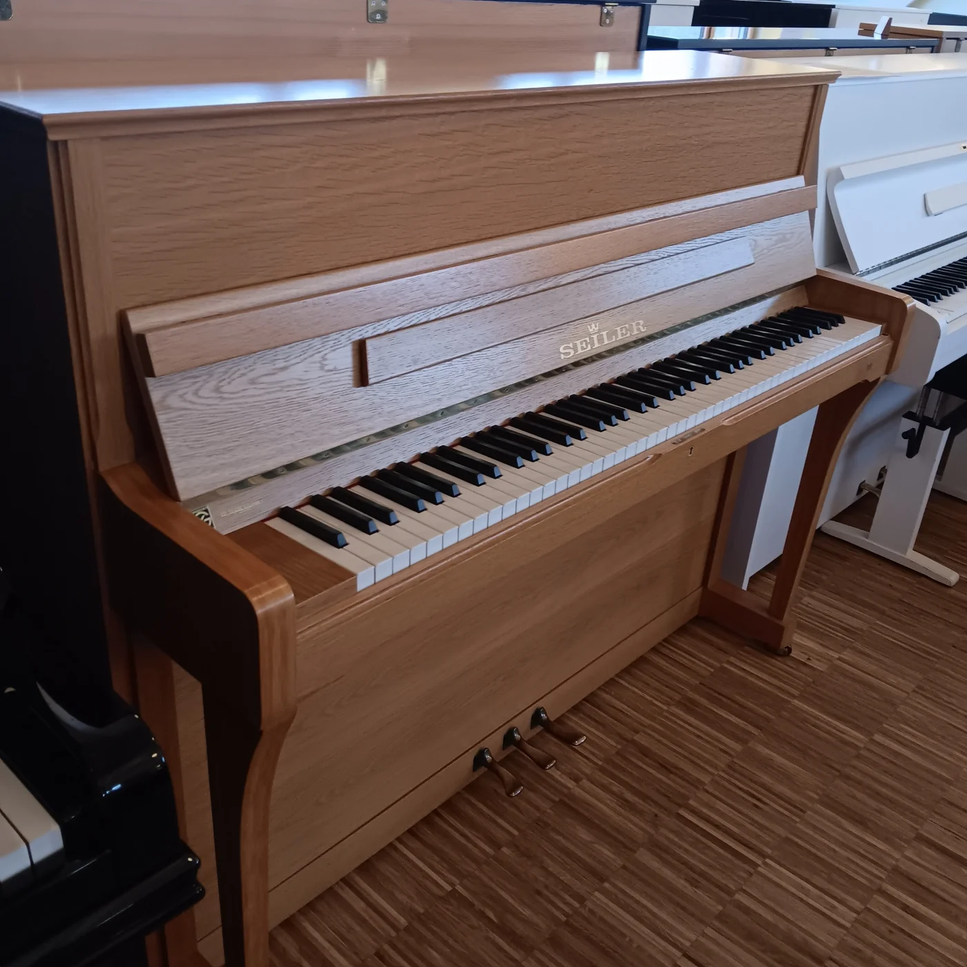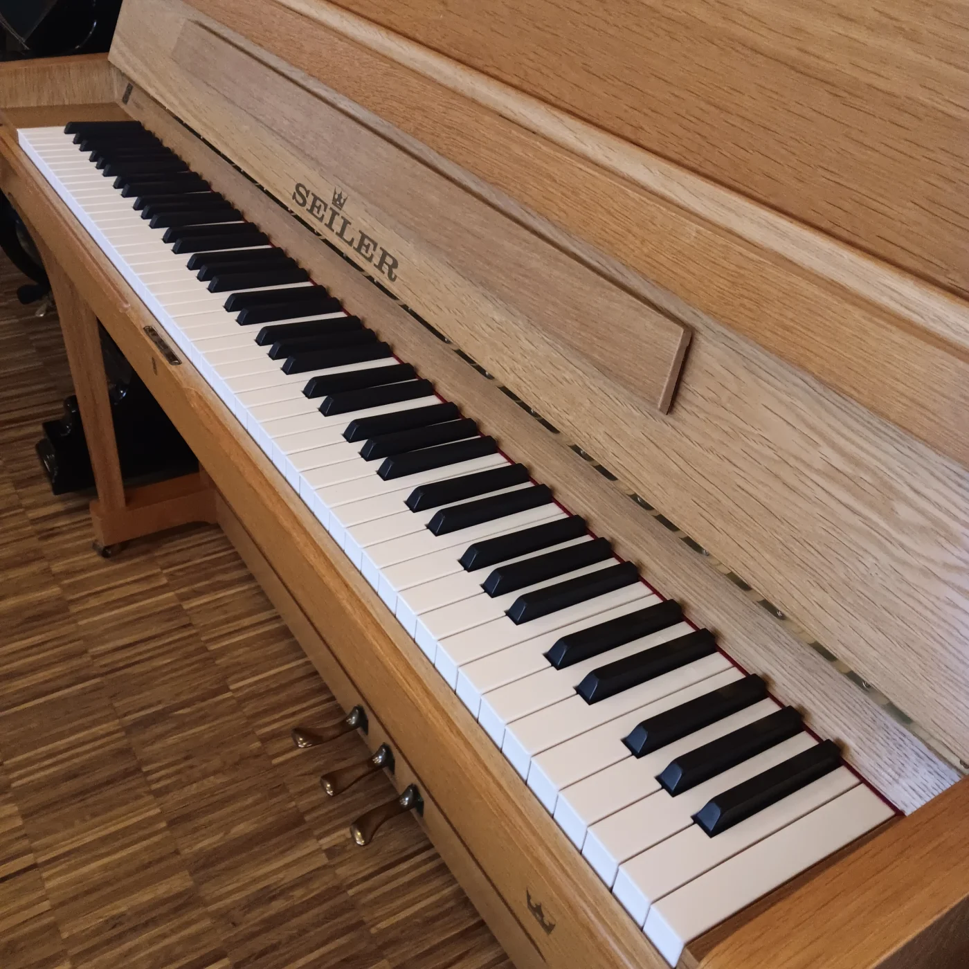 Schönes Klavier aus der starken Zeit bei Seiler in heller und sehr gepflegter Eiche hell. Made in Germany, RENNER, alles was dazu gehört. Mit großer Inspektion, technischer Zustand 1-, Gehäuse 1- mit Potenzial, ein Klavier fürs Leben !