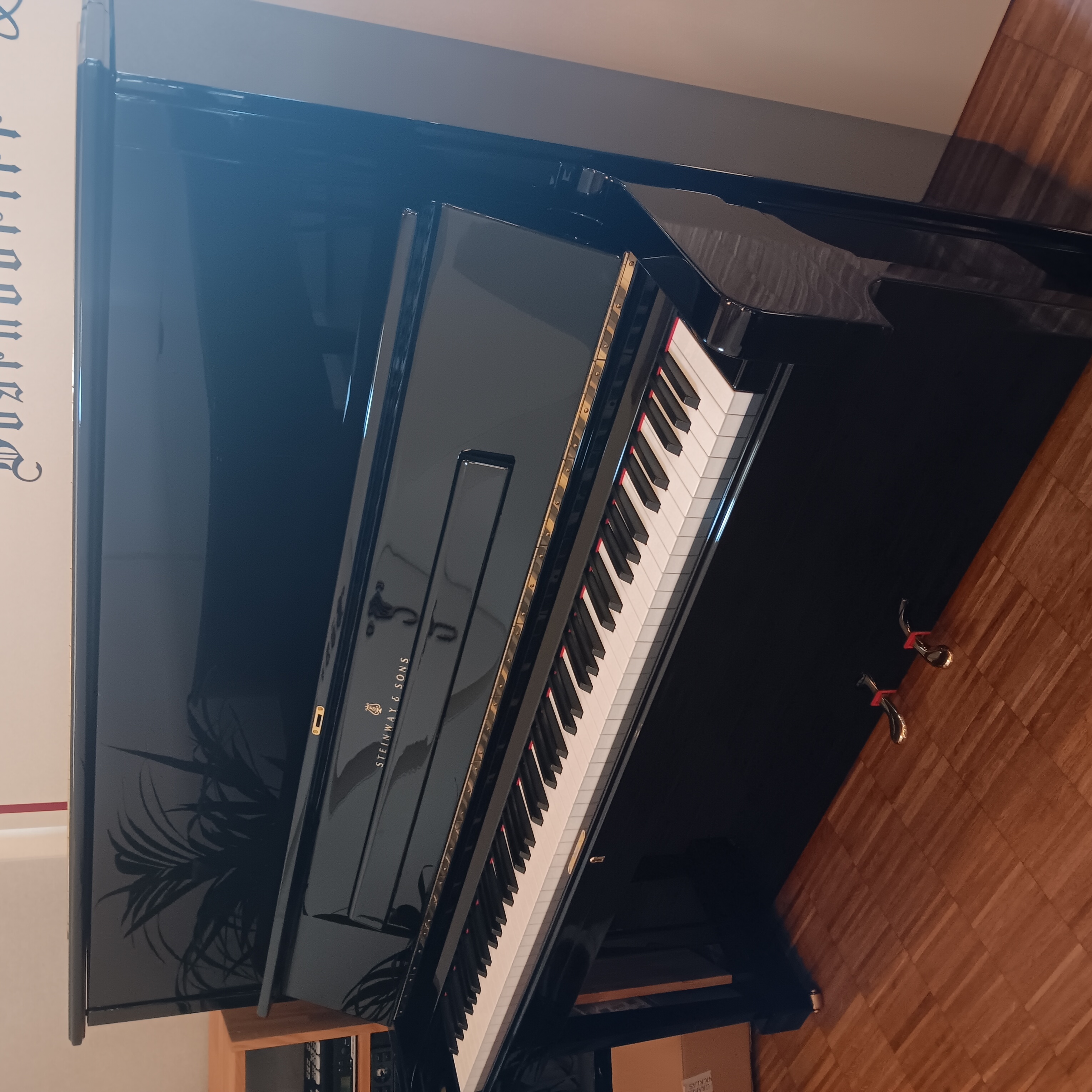 Sehr schönes Steinway & Sons Modell K aus Mitte der 1990er Jahre. Das Klavier stammt aus sehr gepflegtem und privatem Erstbesitz. Unsere Meisterwerkstatt hat dieses hervorragende Instrument gleichsam in einen Neuzustand versetzt; vollkommen beschädigungsfrei und frisch poliert glänzt die Oberfläche sowie alle Messingbeschläge. Die große Mechanikinspektion umfasst, wie bei uns Standard, das (in diesem Fall) leichte Abziehen der Hammerköpfe, das reinigen und durcharbeiten von Mechanik und Klaviatur und die komplette Regulation.