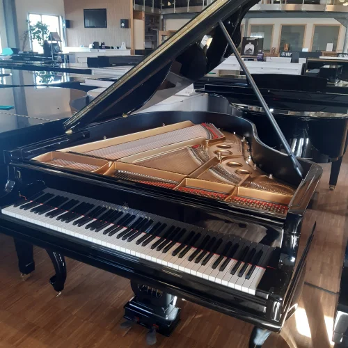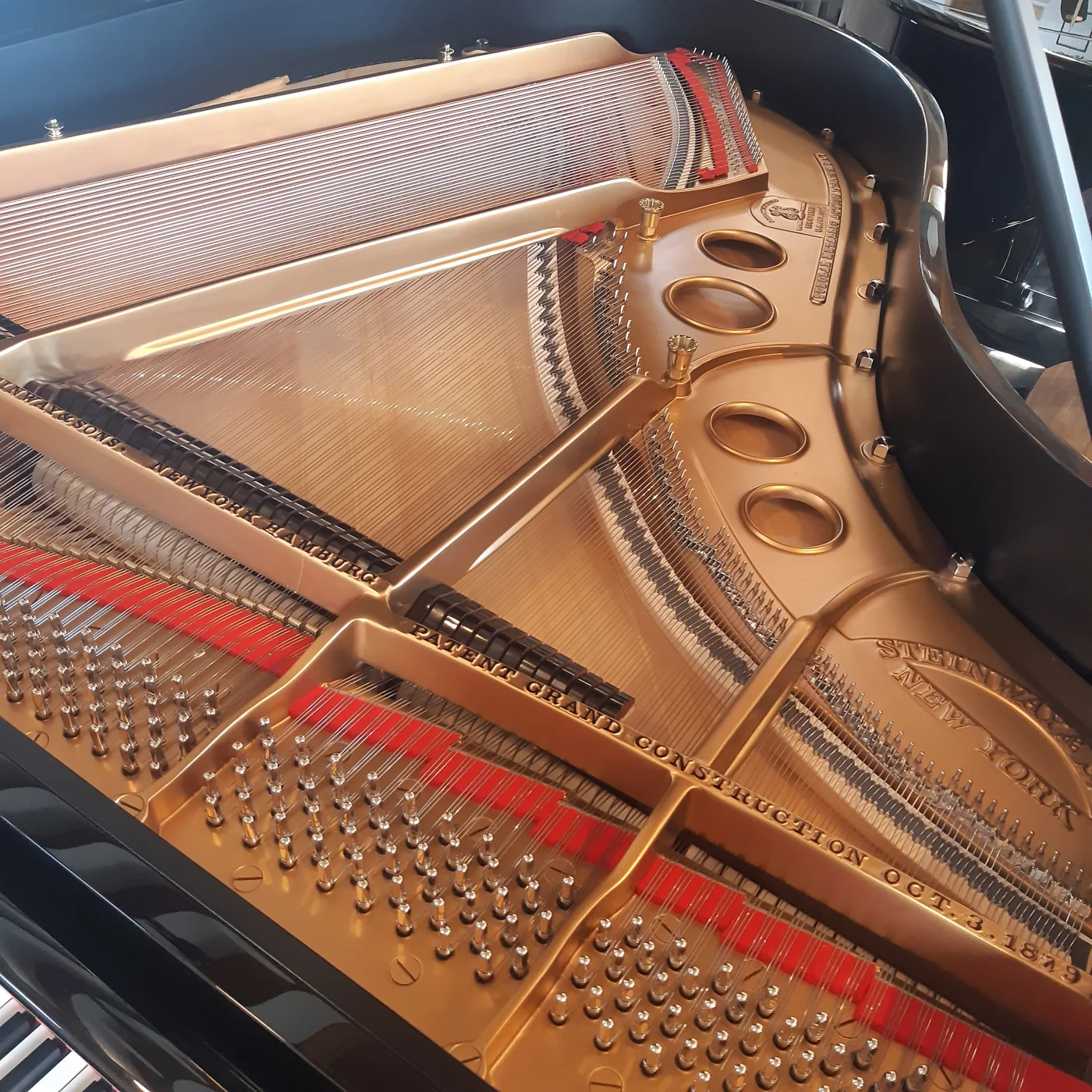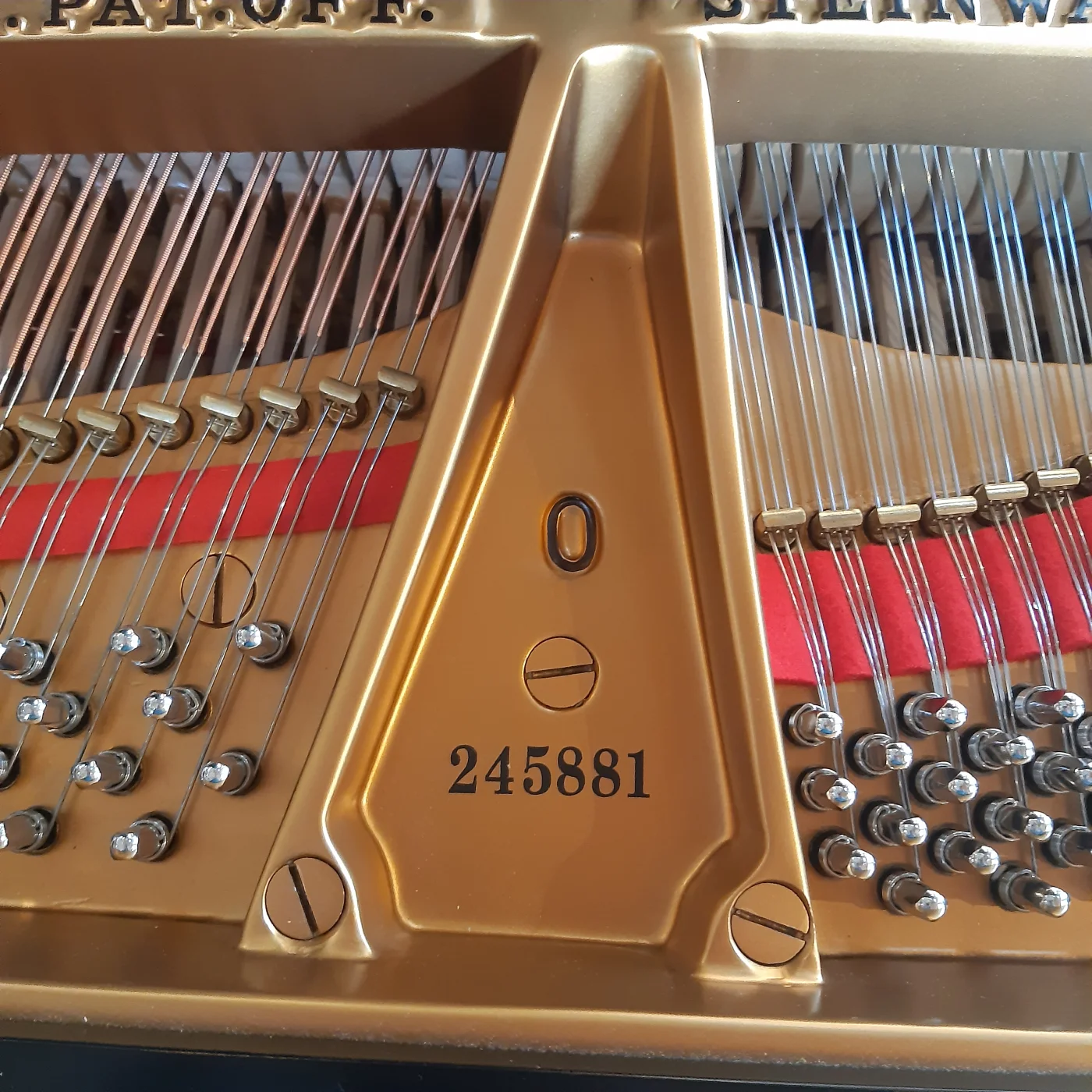 Alle technischen Baugruppen sind komplett neu aufgebaut, der Saitenbezug wurde erneuert, ebenso die Stimmwirbel. Der Resonanzboden wurde neu gewölbt und ausgespänt und neu lackiert, die Stegdoppel erneuert. Das Gehäuse ist neu in Polyester schwarz poliert generalüberholt. Der Flügel verfügt über eine hervorragende Elfenbeinklaviatur, für die selbstverständlich eine Vermarktungsgenehmigung vorliegt. Der Flügel hat einen ausgesprochen angenehmen, warmen Klang mit den neuen, gut vorbeiteten Hammergliedern orig. Steinway & Sons.