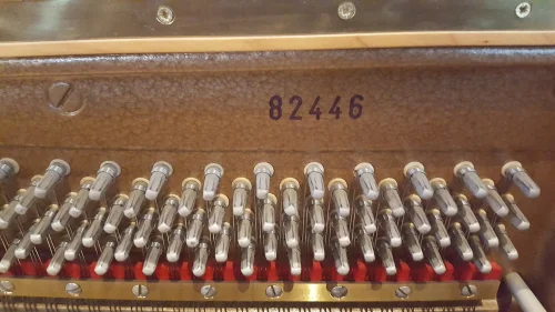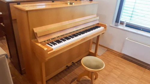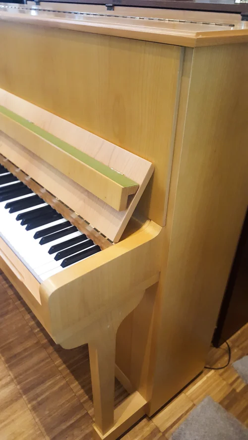 Gut erhaltenes Klavier in Kirschbaum satiniert aus erster Hand von 1980. Narürlich mit RENNER-Mechanik, wie zu der Zeit im Deutschen Klavierbau üblich. Mit großer Mechanikinspektion hat dieses schöne, wenig gespielte Konsolenmodell seine 2. Lebenshälfte vor sich, möglicherweise besser reguliert und ausgearbeitet als je zuvor. Großer Ton, viel Dynamik.