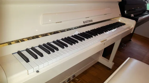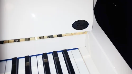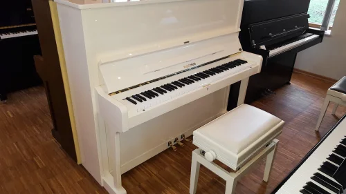 Wertiges, noch bei Petrof gebautes Klavier in Weiß poliert aus 2001. Aus erster Hand, ausgestattet mit RENNER-Mechanikteilen, wenig gespielt, alles im Zustand 1-2 mit zwei kleinen Haarrissen im Polyester, die man sieht, wenn man darauf hingewiesen wird.