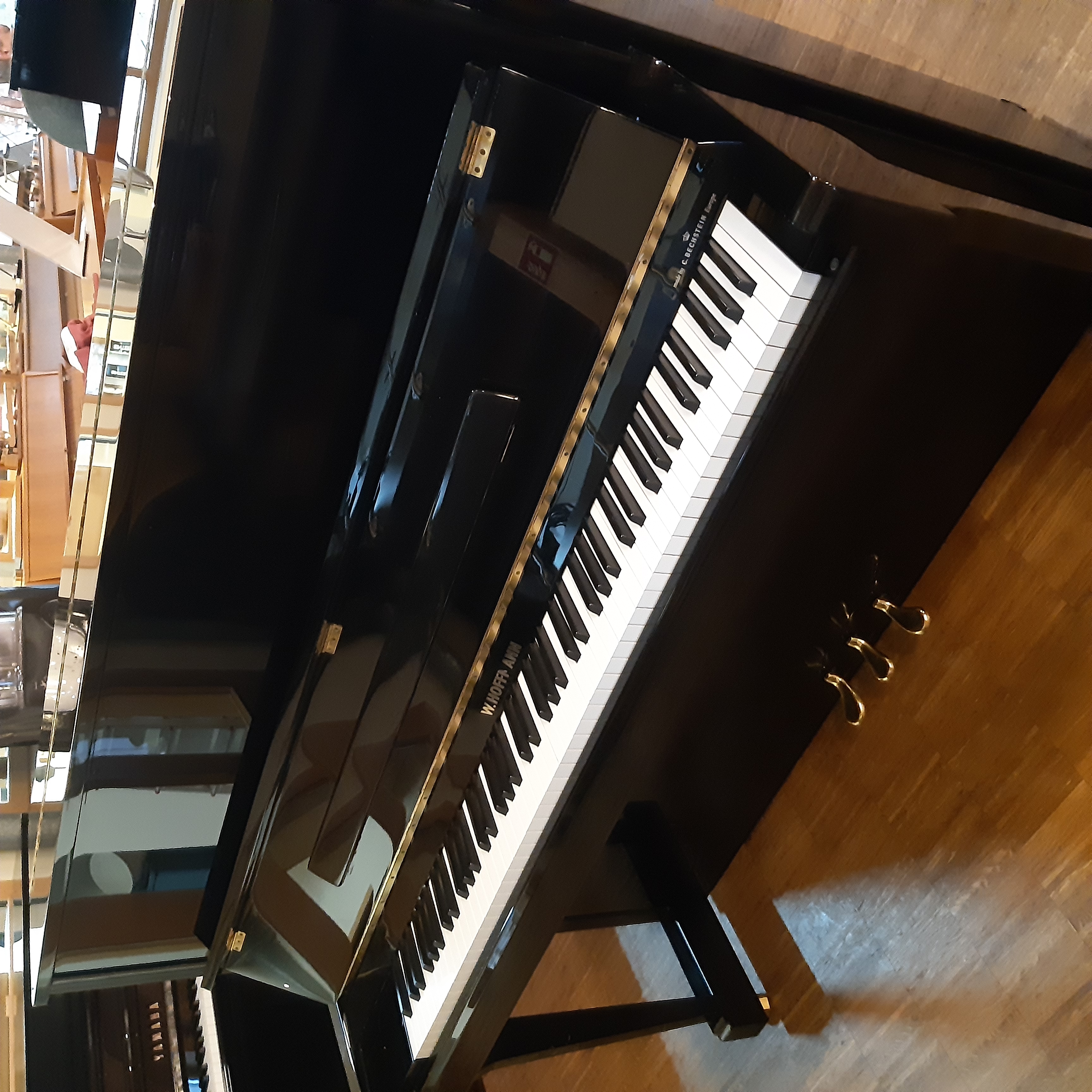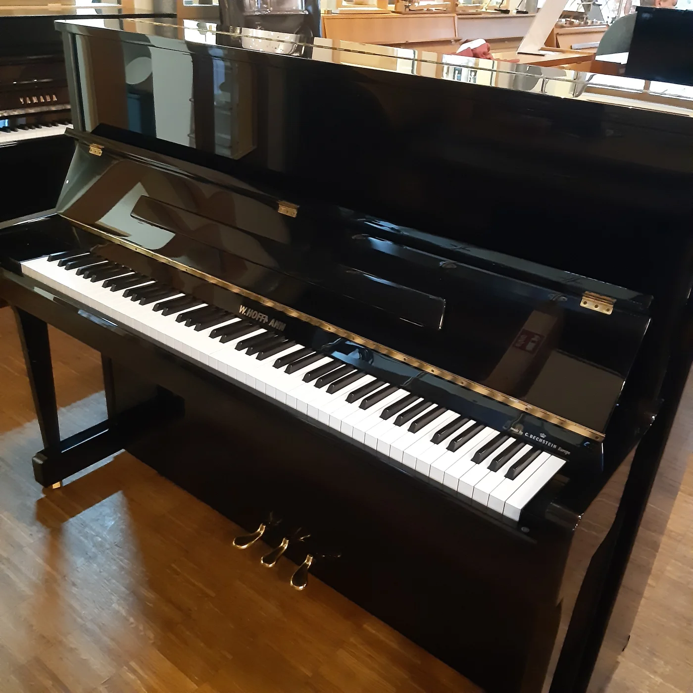 Komplett durchgearbeitetes W. Hoffmann V 120 in schwarz poliert von 2011. Guter Zustand, aus erster Hand. Warmer, eher dunkler Klang, nobel im Bass. Ebenfalls anspielbar In unserem Musikhaus in Münster ein Modell W. Hoffmann 125!