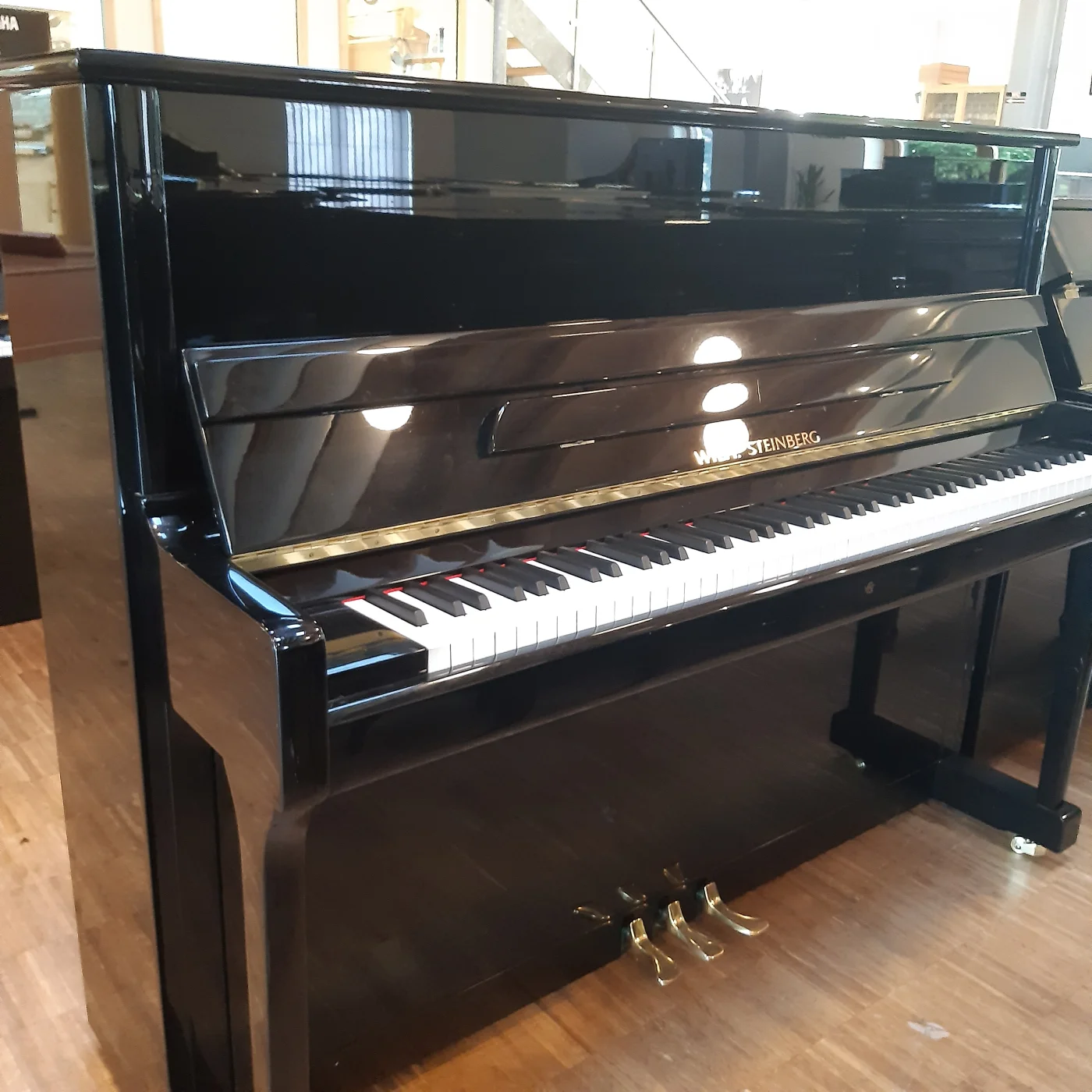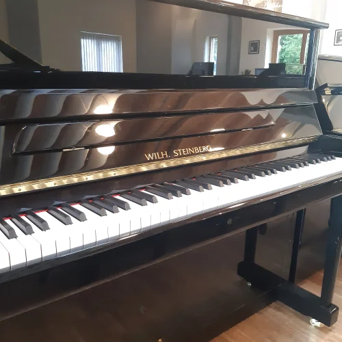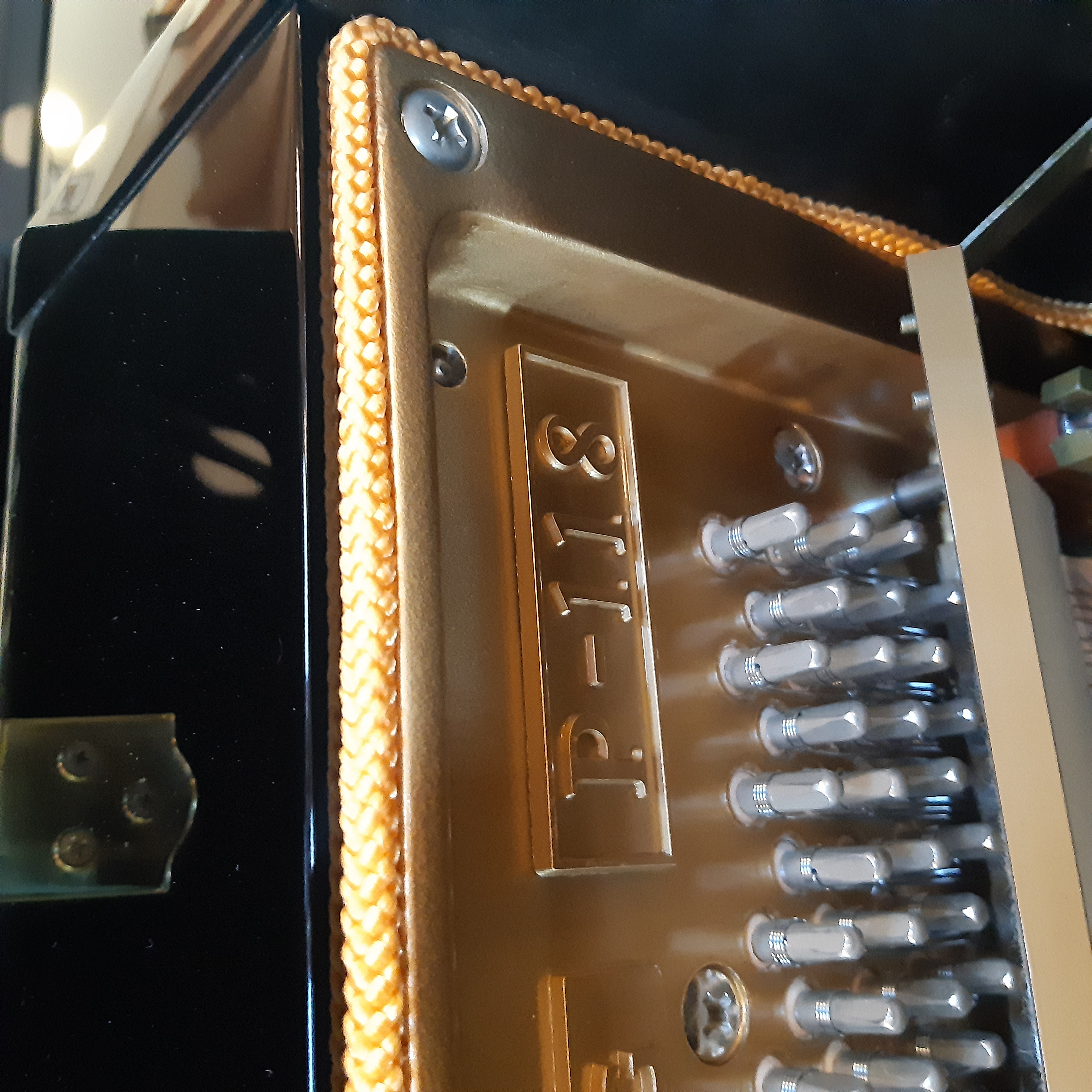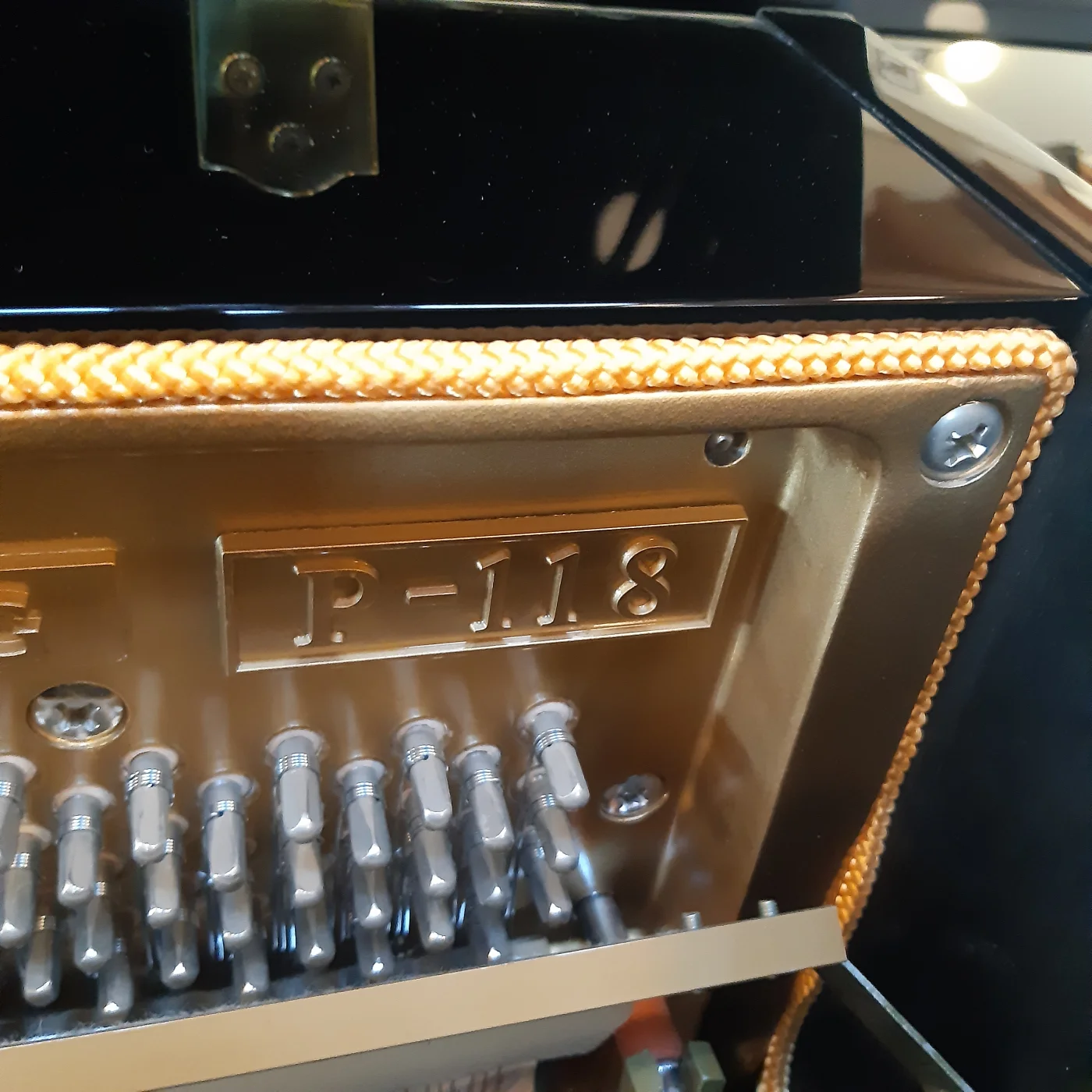 Junges Konsolenklavier in schwarz poliert im Bestzustand. Das P 118 wurde in unserer Meisterwerkstatt noch einmal komplett durchgearbeitet. Eine schöne Option in der 4000-Euro Klasse in schwarz poliert mir klassischer Konsolenform !