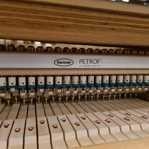 Unser Weinbach 190 "ist" ein Petrof PIII, den Sie bei uns ebenfalls anspielen können. Die Gussplatte ist matt, nicht glänzend lackiert, alles andere entspricht den Standards bei Petrof. Das Instrument stammt aus erster Hand und wurde 2005 von einem namhaften Fachhändler aus Hamburg an den Vorbesitzer verkauft. Die verbaute Renner-Petrof Mechanik ist die beste Ausstattung, mit der diese Flügel angboten wurden.