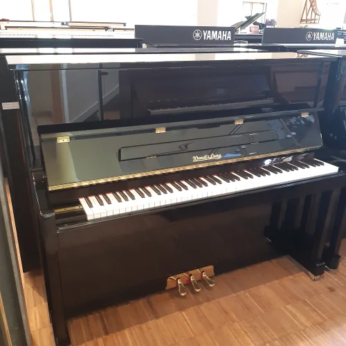Schwarz hochglänzendes Instrument in schöner Bauhöhe von 122 cm. Nach Überholung in unserer Meisterwerkstatt anspielbereit ab ca.Mitte Juni 2023.