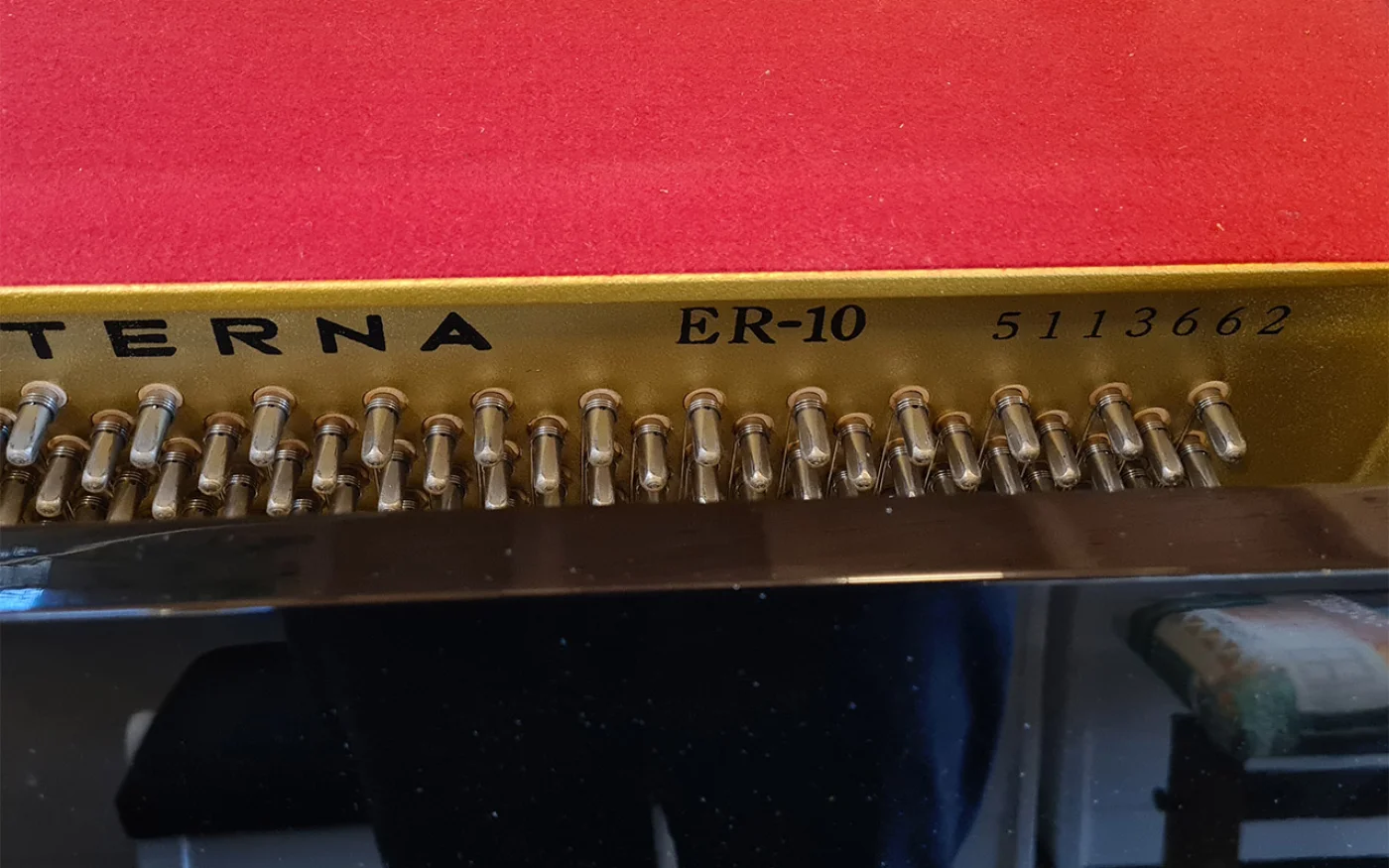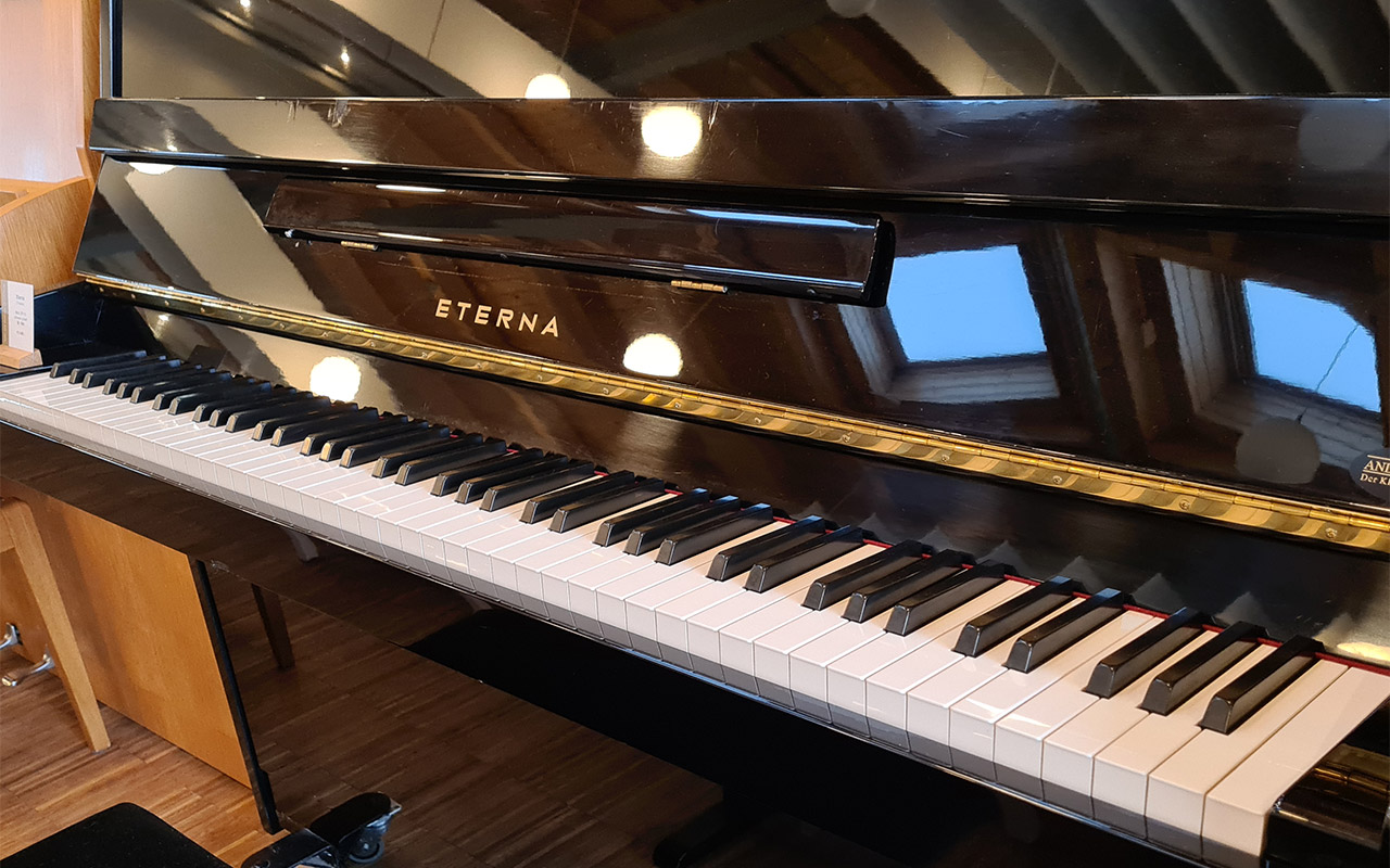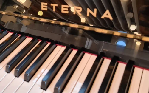 Eterna war die erste große Zweitmarke von Yamaha. Die Instrumente wurden mit ihren Seriennummern in die laufende Zählung bei Yamaha integriert und auch in Japan hergestellt. Unser ER 10 ist am ehesten mit dem aktuellen Yamaha B1 vergleichbar und hat dank Nutzung durch eine Kirchengemeinde aktuell Rollenböcke montiert. Der Zustand ist technisch 2, optisch 3, anspielbereit sofort, fertig März 2022.