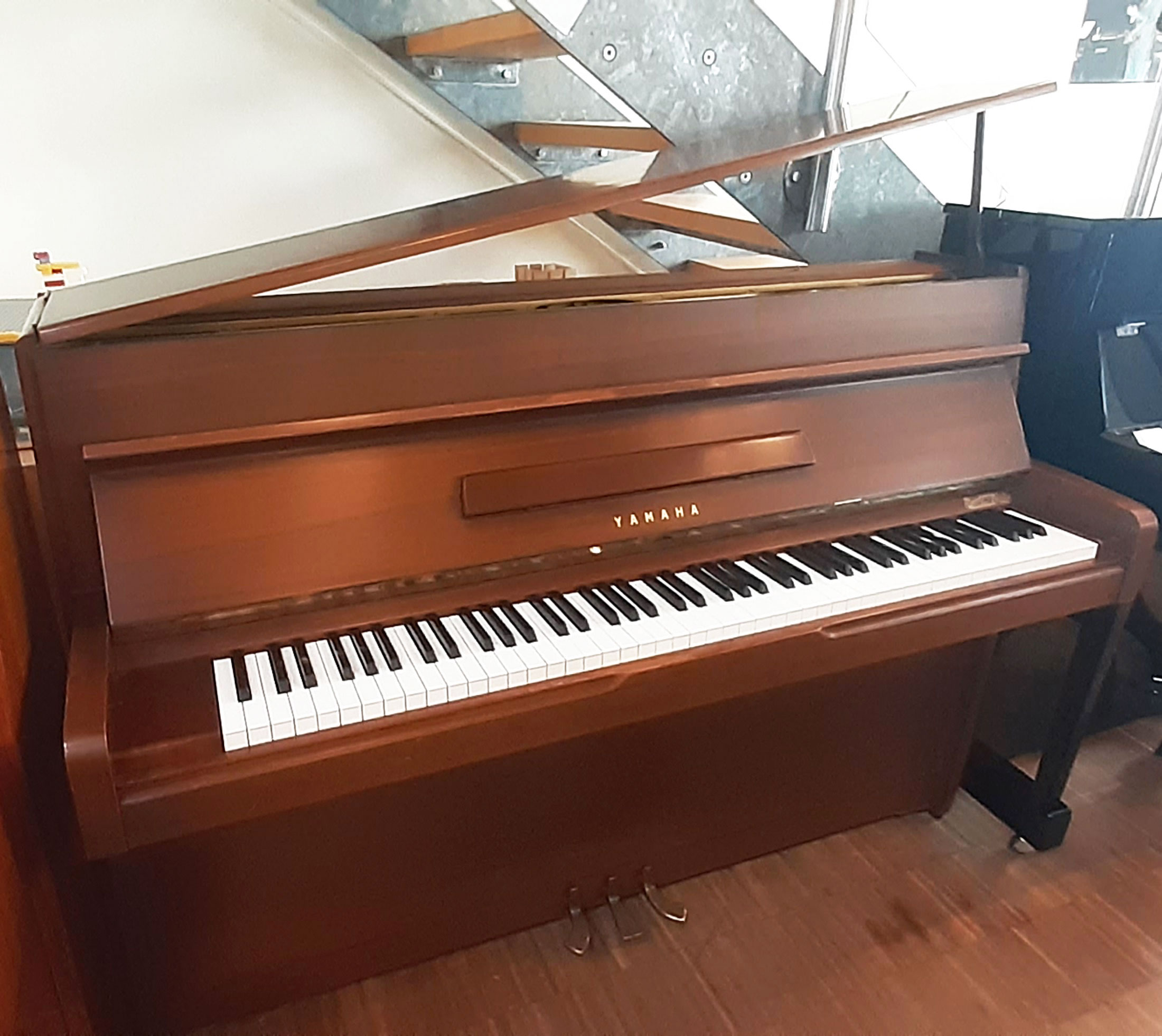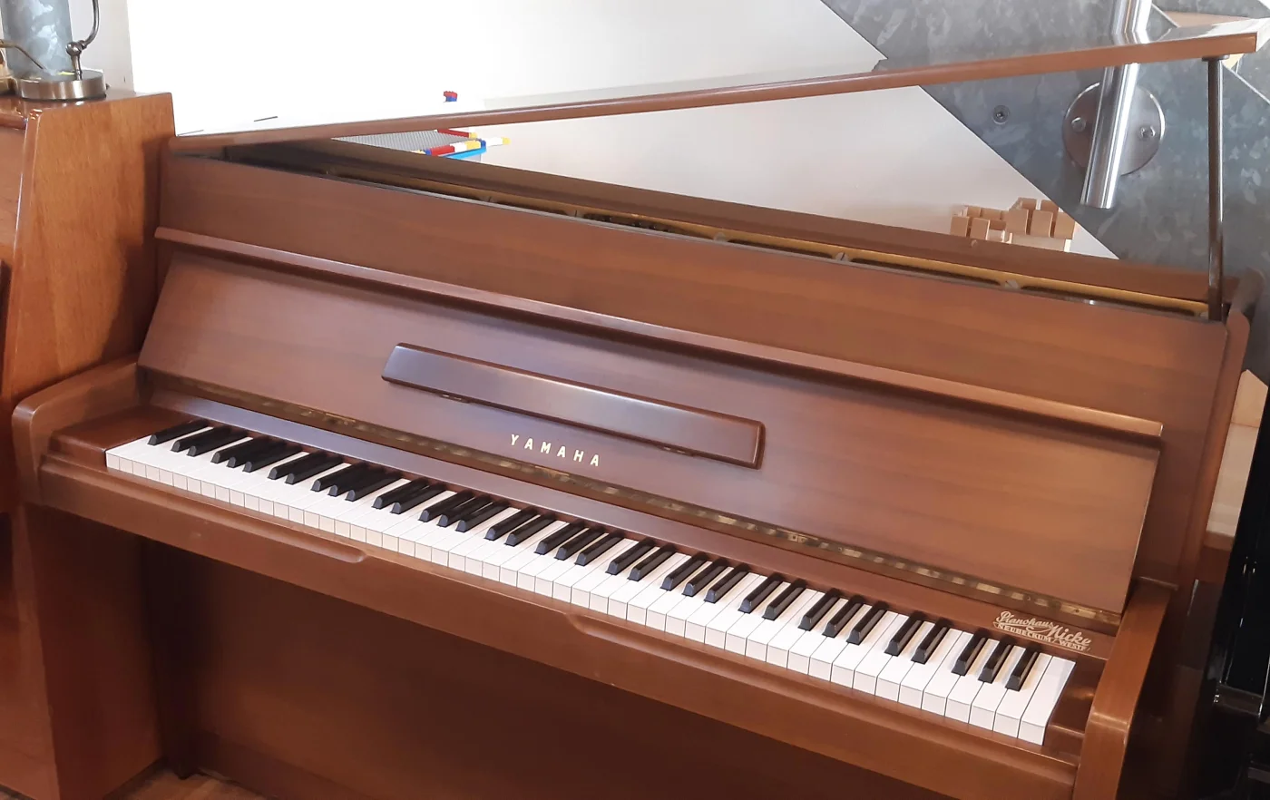 Gepflegtes, frühes Yamaha mit Mechanikinspektion. Das M 1 zeigt anschaulich, mit welchen Mitteln Yamaha dem deutschen Kleinklavierbau der 60er begegnete: solide Technik und ein bis auf den seitlich angeschlagenen Deckel (Grüße an Fa. Schimmel) kopiertes Design. Bekanntlich ja mit Erfolg !