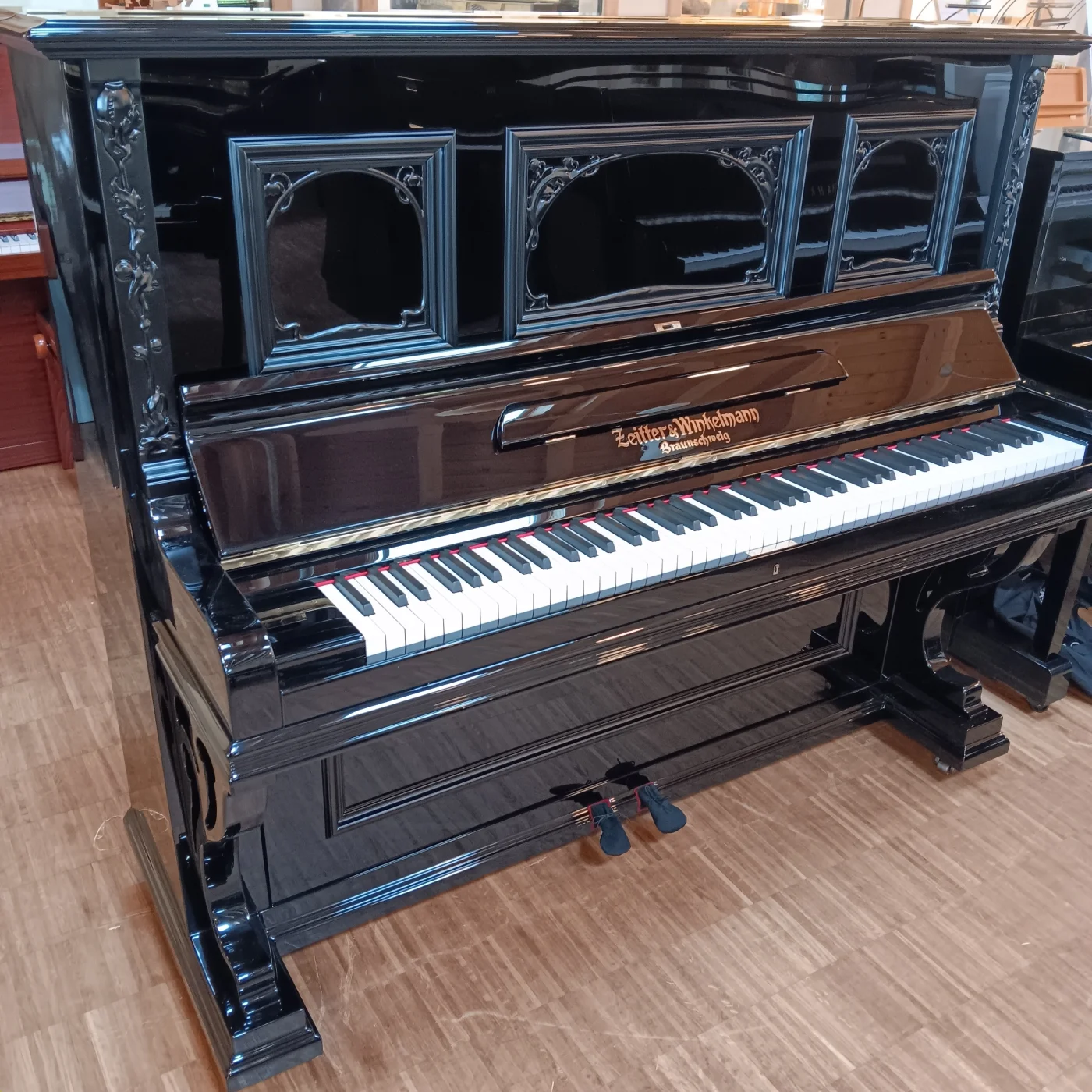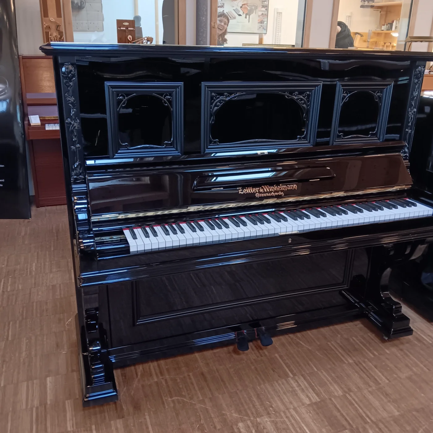 Eine solche Investition ist nur dann gerechtfertigt, wenn am Ende auch ein excellentes Musikinstrument dabei herauskommt. Und das können wir mit Fug und Recht behaupten! Geschäftsführer und Klavierbaumeister Gernot Gottschling hat seine Kindheit und Jugend Klavier spielend an einem Zeitter und Winkelmann Klavier verbracht, daher wissen wir um die Qualitäten dieser Instrumente. Vergleichen Sie dieses schöne Zeitter & Winkelmann Klavier mit einem ähnlich aufwendig neu aufgebauten Grotrian-Steinweg Klavier aus dem Jahr 1903 im Haus der Klaviere Gottschling, wenn Sie ein ein hervorragendes Klavier mit einem wirklich exclusiven Gehäuse erwerben möchten !