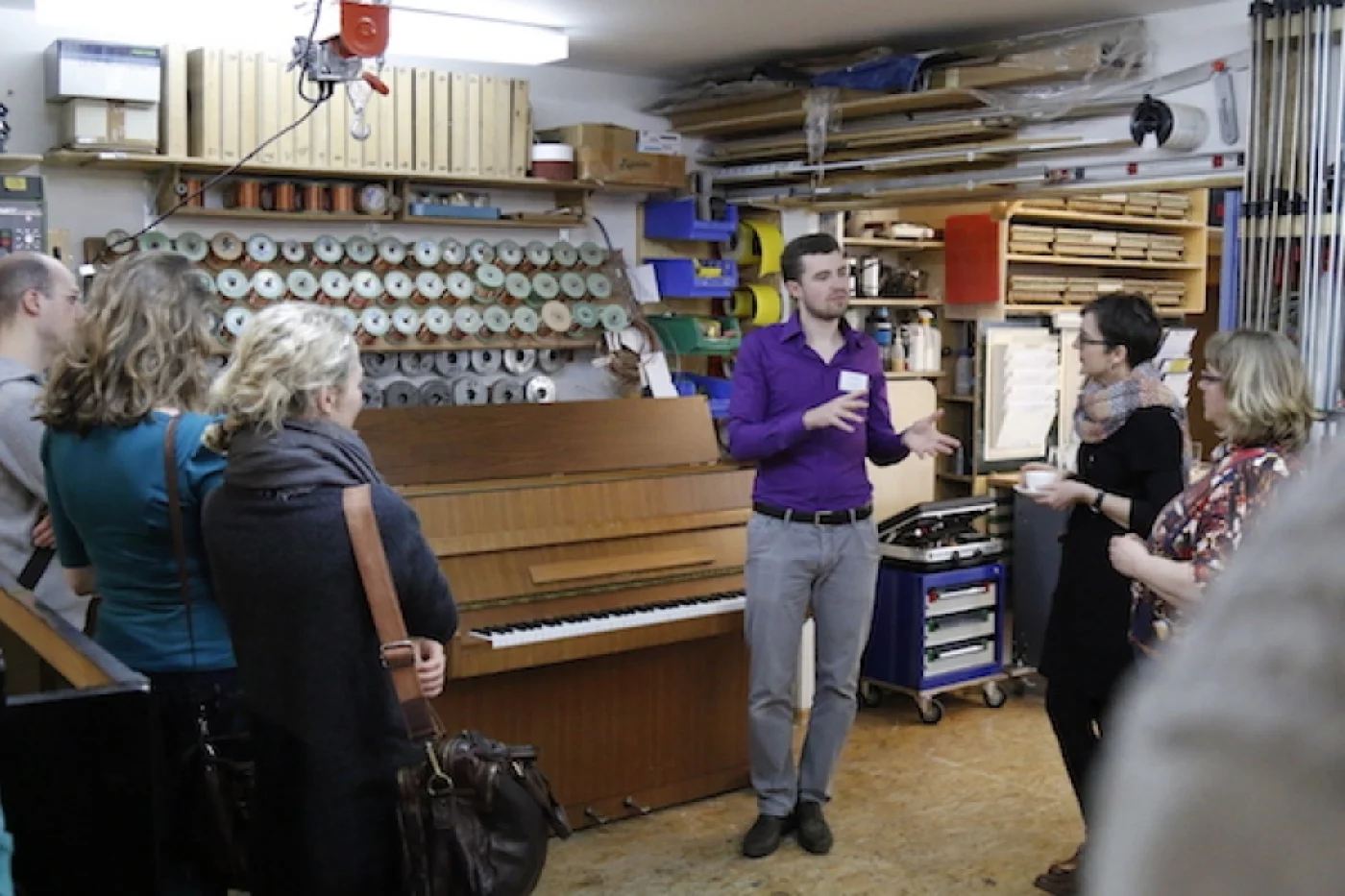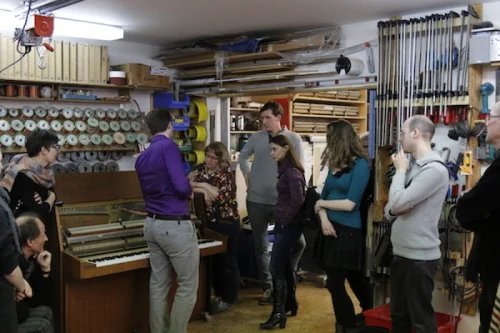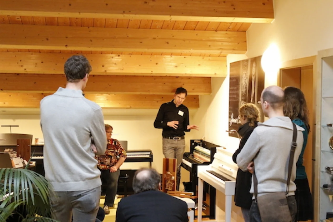 Rund 30 Klavierinteressierte und Klavierpädagogen waren der Einladung zum ersten Werkstatt-Café gefolgt und verbrachten in der Klavierwerkstatt im Haus der Klaviere einen angeregten Nachmittag.