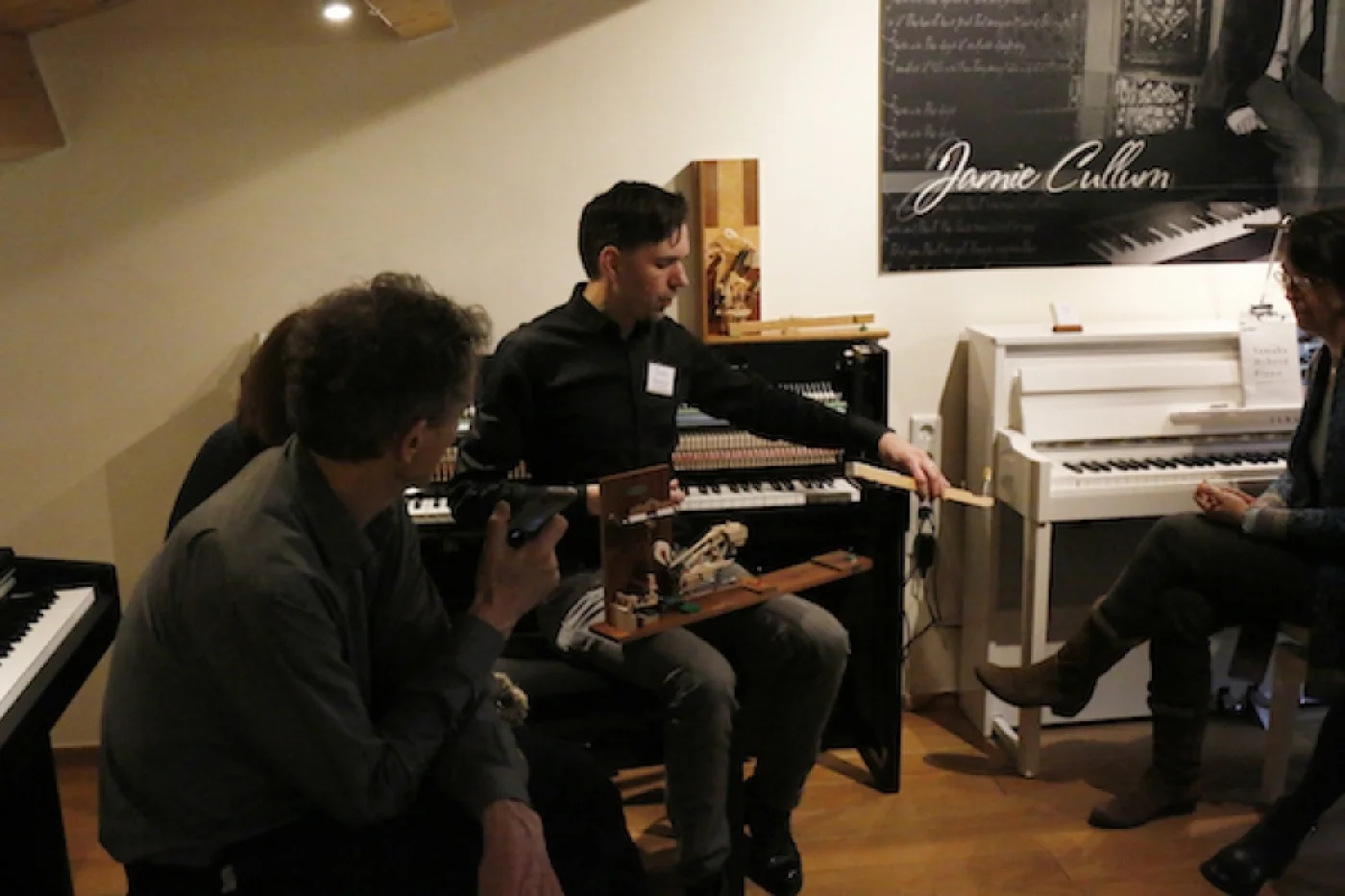 In zwei Gruppen moderierten Klavierbauer Nils Schoofs und Klavierbaumeister Simon Rempe das Thema "Was Klavierinteressierte und Klavierpädagogen über ihre Instrumente und die ihrer Schüler wissen sollten". Vom akustischen Klavier ob neu oder alt, über das Digitalpiano, bis hin zu den neuen Hybridinstrumenten von Yamaha wurden alle Instrumente vorgestellt und ausprobiert und Vor- und Nachteile diskutiert. Die angeregten Gespräche zeigten das große Interesse an diesem Thema und die Notwendigkeit eine solche Diskussion zu führen und eine Marktübersicht zu geben.