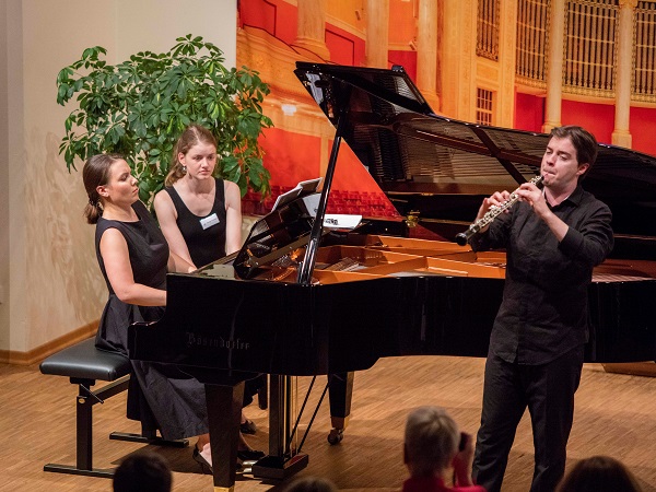 Die Arie "Ach, ich fühl es" aus der "Zauberflöte" von gehört wohl zu den innigsten und gefühlsvollsten Gesangspartien aus dem Opernschaffen Wolfgang Amadeus Mozarts. Diese erklang in einer Transkription für Oboe und Klavier und sofort war jeder Zuhörer im Saal eingefangen von dem warmen Oboenton von Ramón Ortega Quero. Solch gefühlvolle Melodiegestaltung erlebt man wohl nur selten, konnte der junge Künstler vom ersten Ton zeigen, warum er zur ersten Garde seines Instrumentes gehört. Auch bei den drei "Fantasiestücken für Klarinette und Klavier op. 73" von Robert Schumann konnte er sein niveauvolles und kultiviertes Spiel zeigen, differenzierte sehr gut und so erklangen die drei Stücke mit einem innigen und zu Herzen gehenden Klang. Wunderbar interpretierte das Duo dessen "3 Romanzen für Oboe und Klavier op. 94", deren Innigkeit und Melancholie übertrug sich bestens auf das Publikum übertrugen. Mit "Le Morceau de Salon für Oboe und Klavier op. 228" von Johann W. Kalliwoda, einem Salonstück mit stark virtuoser Ausprägung, endete ein Konzert, das in solch herausragender Art sicherlich lange noch in Erinnerung bleiben wird.