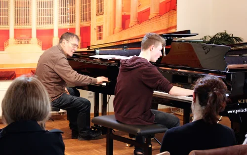 Etwa 30 Pianisten, Studenten und ambitionierte Laienspieler kamen am vergangenen Wochenende zusammen, um an einem Meisterkurs für Klavier mit Prof. Gregor Weichert teilzunehmen.