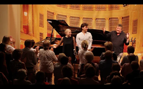 Ungefähr 140 Zuhörer lauschten beim letzten Kulturforums-Konzert im Haus der Klaviere Lutz Görner, Nadia Singer und Edward Leach beim neuen Schubert-Programm. Am Ende gab es standing-ovations für die berührende und begeisternde Leistung!