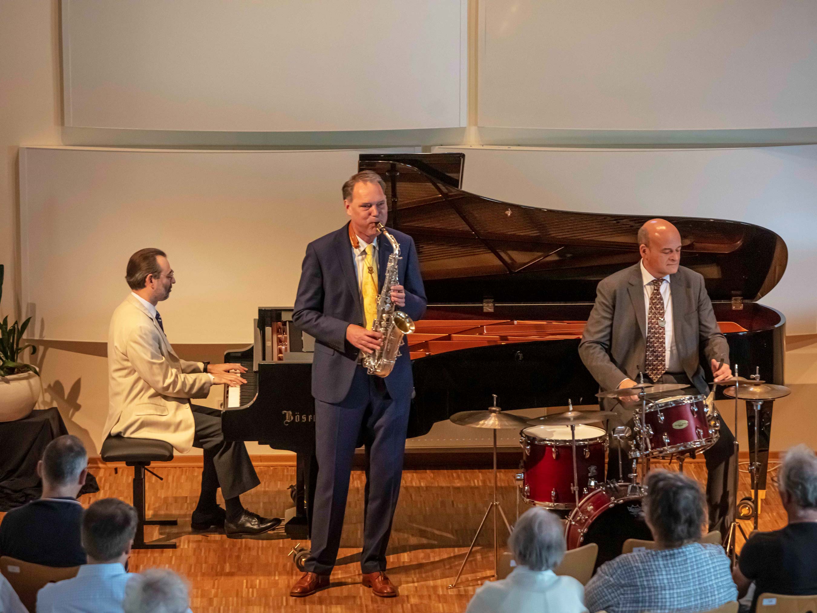 Zuerst einmal bei sommerlichen Temperaturen durch den Garten hinter dem Haus der Klaviere Gottschling schlendern und sich im Anschluss von einem der renommiertesten Jazztrios musikalisch verwöhnen lassen - dies war am Sonntag in Hiddingsel möglich. Das neue Projekt "European Songbook" von Saxophonist Frank Roberscheuten, Pianist Rossano Sportiello und Schlagzeuger Martin Breinschmid entpuppte sich nämlich als ein besonderes Vergnügen.