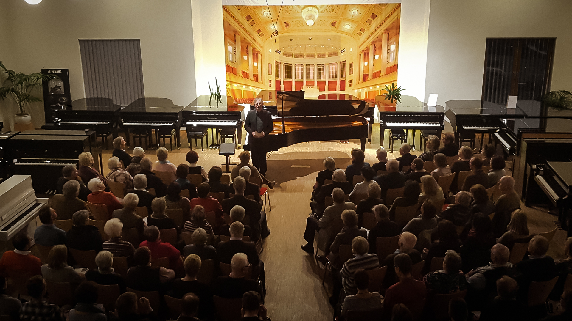 Das Thema, welches man durchaus auch als akademisch und sperrig empfinden könnte, lockte immerhin 100 Zuhörer ins Haus der Klaviere. Und Schillers „Formtrieb“ und „Stofftrieb“, der erst durch den „Spieltrieb“ (hier: Klavierspieltrieb!) geadelt wird, ist ein durchaus überzeitliches Thema. Wobei sich nicht wirklich der Inhalt, sondern nur das Vokabular geändert hat.