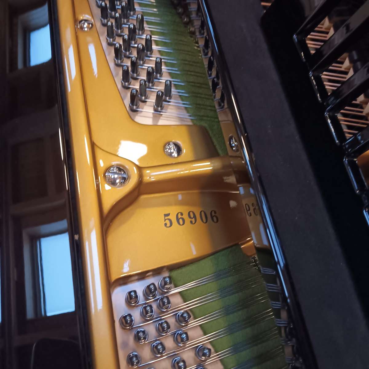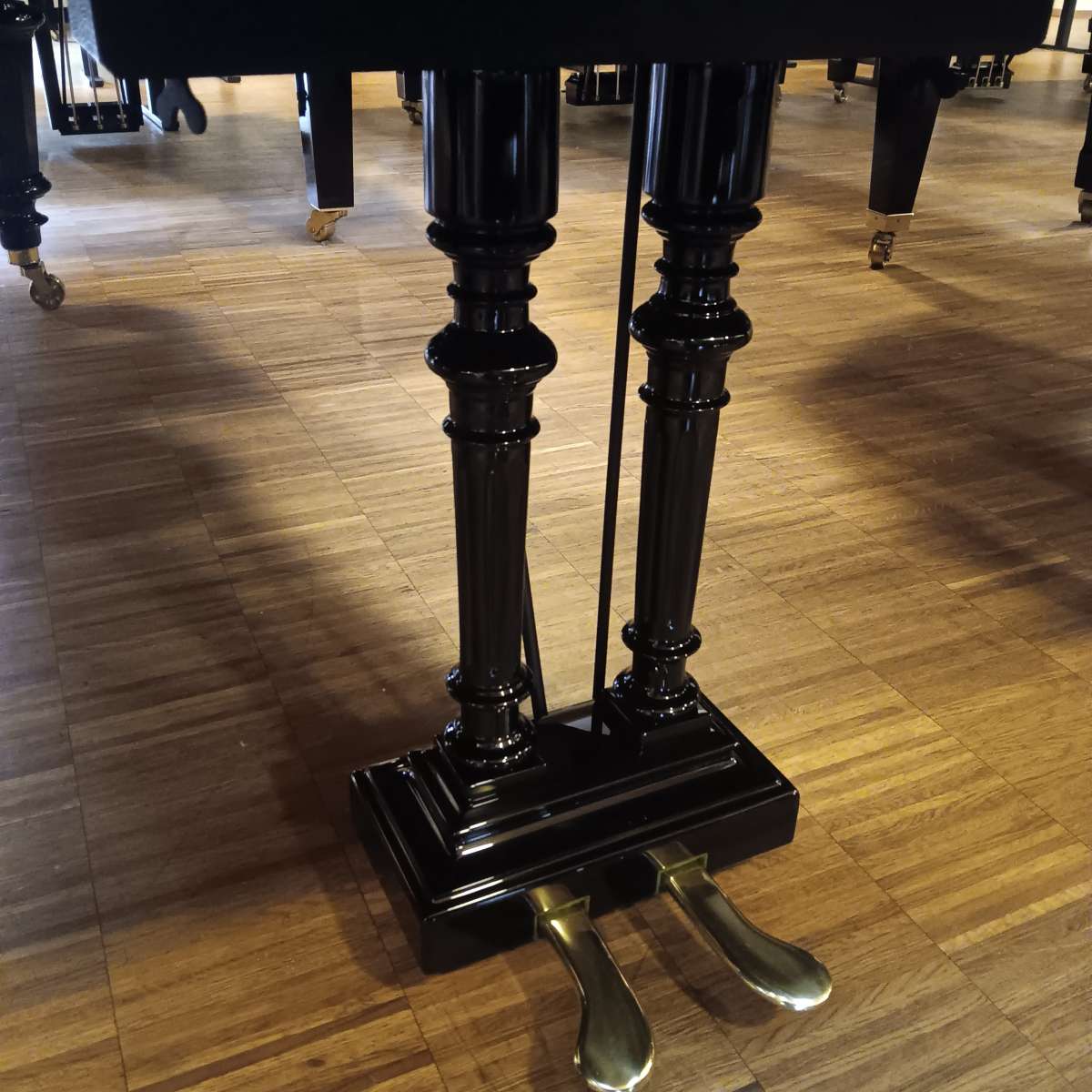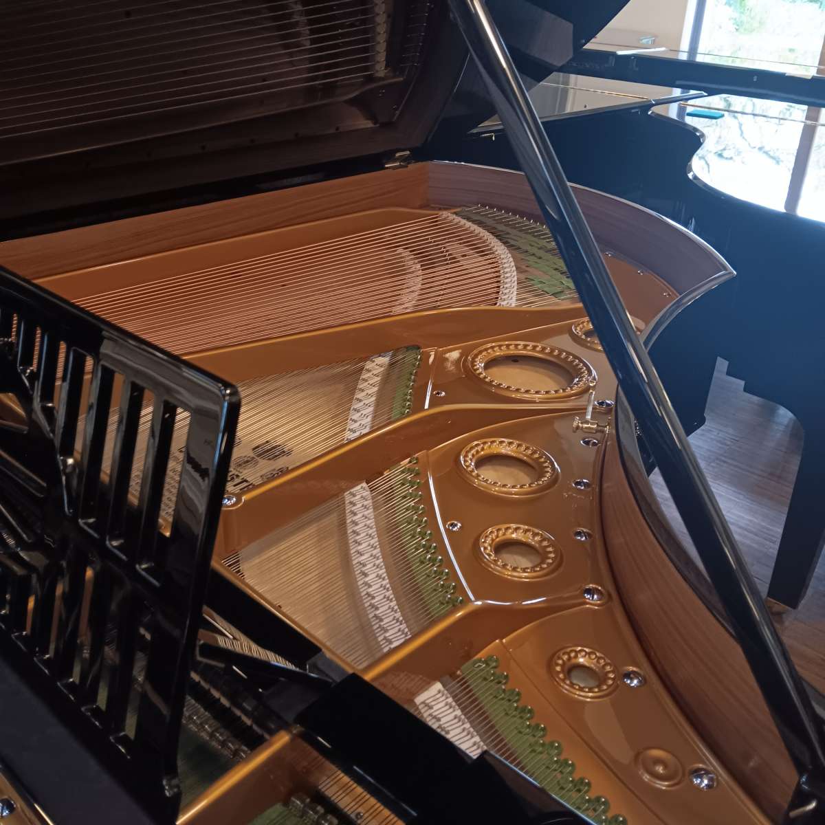 Natürlich wurde das Gehäuse neu lackiert, in Polyester schwarz in Referenzqualität mit Überholung aller Messingbeschläge und der Rollen. Der Flügel befindet sich in der Endausarbeitung und wird etwa zum Jahreswechsel anspielbereit sein.