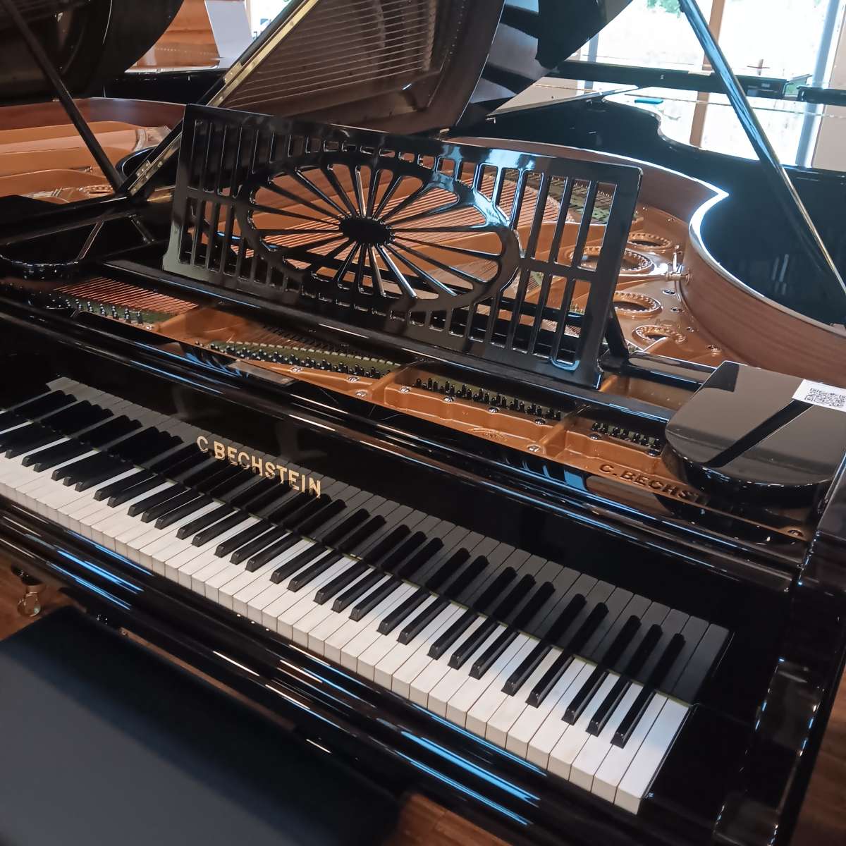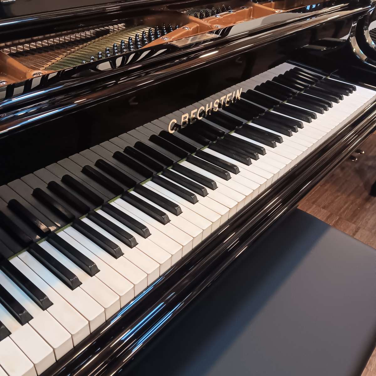 Komplett neu aufgebauter C. Bechstein-Flügel in schwarz poliert aus dem Jahr 1900. Hier sind wir keine Kompromisse eingegangen: neuer Stimmstock, neue Stegdoppel, Gussplatte sandgestrahlt, gefüllert und neu lackiert, Resonanzboden neu gewölbt mit guter "Crown": hier beginnt ein neues Flügelleben!